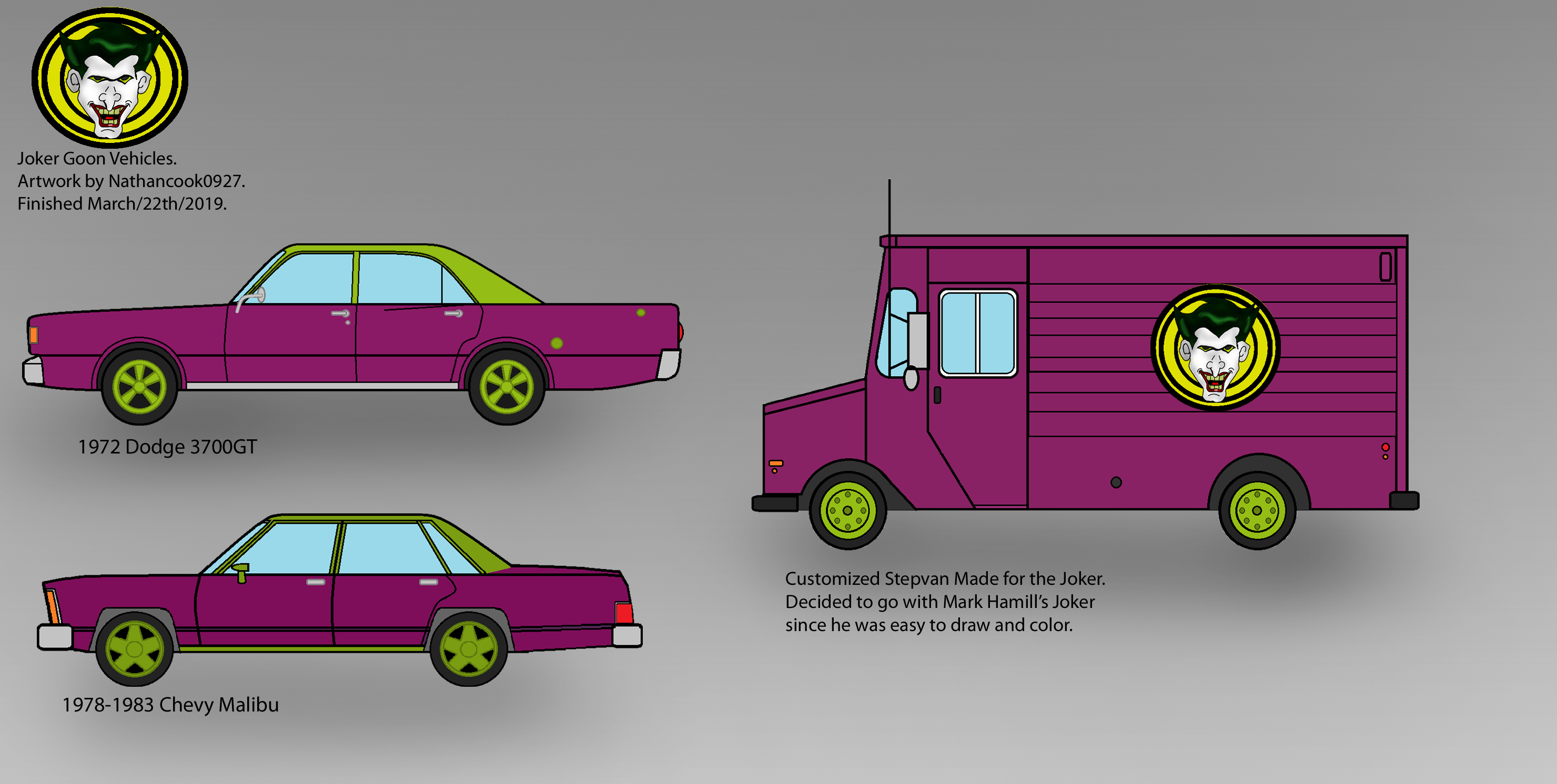 Joker Goon Vehicles Belongs to DC Comics & Warner Brothers. #Vehicle #DC_Comics #Joker #Dodge #Chevy #Van #Movie_Car #Fanart