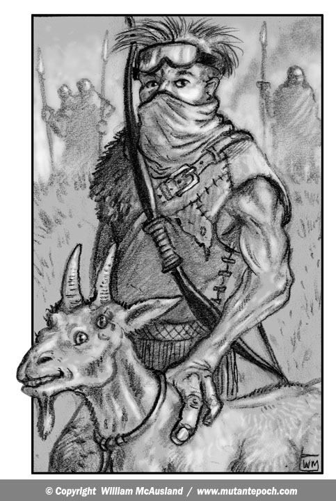 goat, goatman, beast, bestial, manimal, billygoat, color change, RPG, ttrpg, bestial human, characters, noaiart, william mcausland, wasteland, mutant epoch, apocalyptic, expansion rules, post-apocalyptic, the mutant epoch, outland system, outland arts, mutants, mutant, epoch, ink artist, Kamloops artist, apocalyptic, fallout, like, gamma world, humanoid animal, roleplaying game,