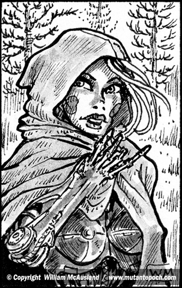The Android Bounty Hunter Example of Pre-Game Castes: Military, Covert Roll a twenty sided dice to discover your android’s pre-game career: Roll 1d20: 1. Bounty Hunter / 2. Bunker Dweller / 3. Junk-Doctor / 4. Repairer / 5. Scavenger / 6. Technician, Cybernetic / 7. Wastelander / 8. Slave, Laborer / 9. Slave, Gladiator / 10. Nomad / 11. Trader / 12. Crafts person / 13. Technician / 14. Street Thug / 15. Raider / 16. Pirate / 17. Thief  / 18.19. Assassin / 20. Mercenary Ink art from page 56 of The Mutant Epoch RPGs Expansion Rules Book.  Learn about this game book at https://www.amazon.com/dp/0994923791 or https://www.outlandarts.com/expansionrules.htm