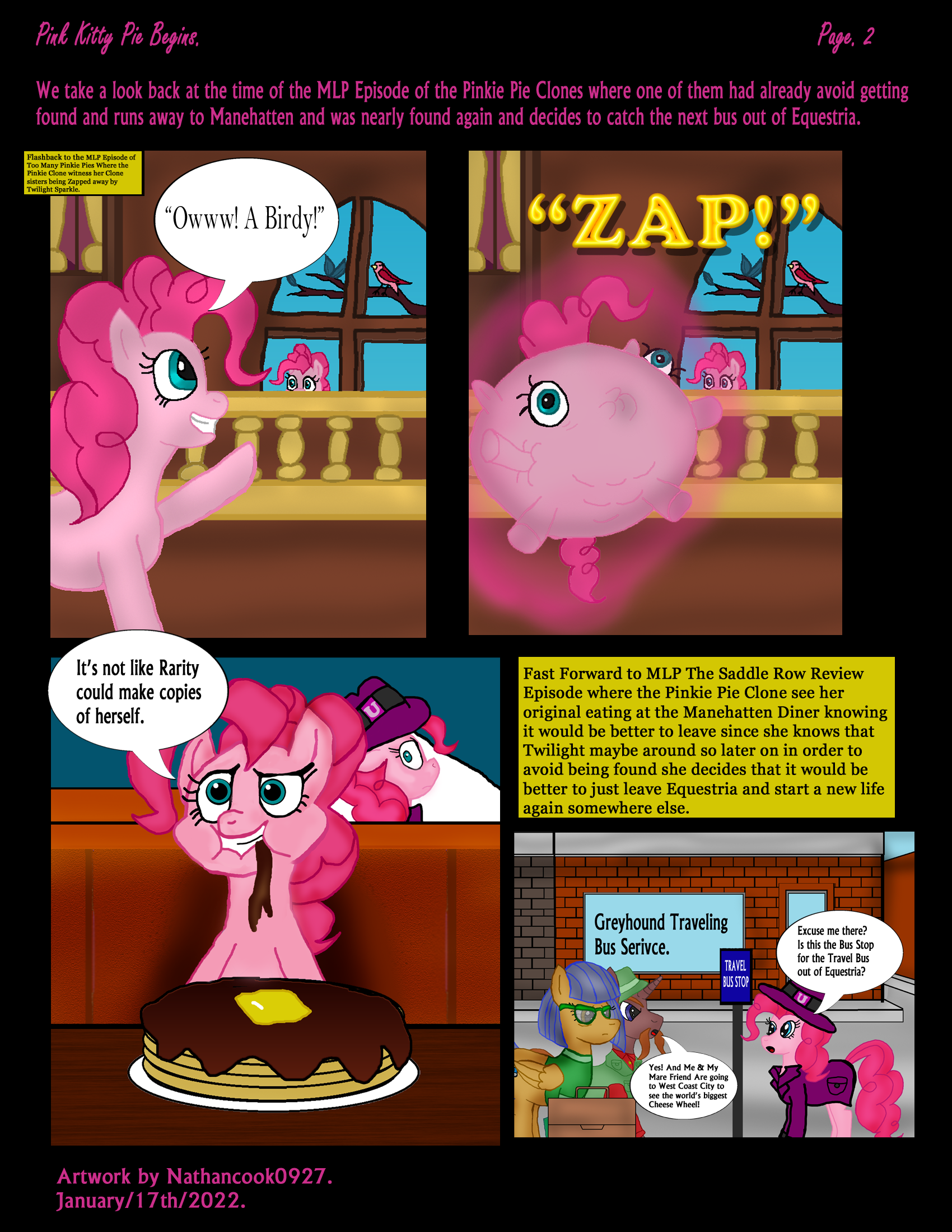 Here's Page 2 Where we look back at the Pinkie Pie Clone witnessing her Clone Sisters getting zapped away and later trying to hide from not only her Original but also hidding from Twilight and decides to leave town again after almost getting caught at the Manehatten Diner catching the next bus out of town. MLP Pinkie Pie and her Clones Belongs to Hasbro. And My 2 Pony OCs, My Police Pony OC along with Almond Butter belongs to Me Nathancook0927. #MLP #Comic #Pinkie_Pie_Clones