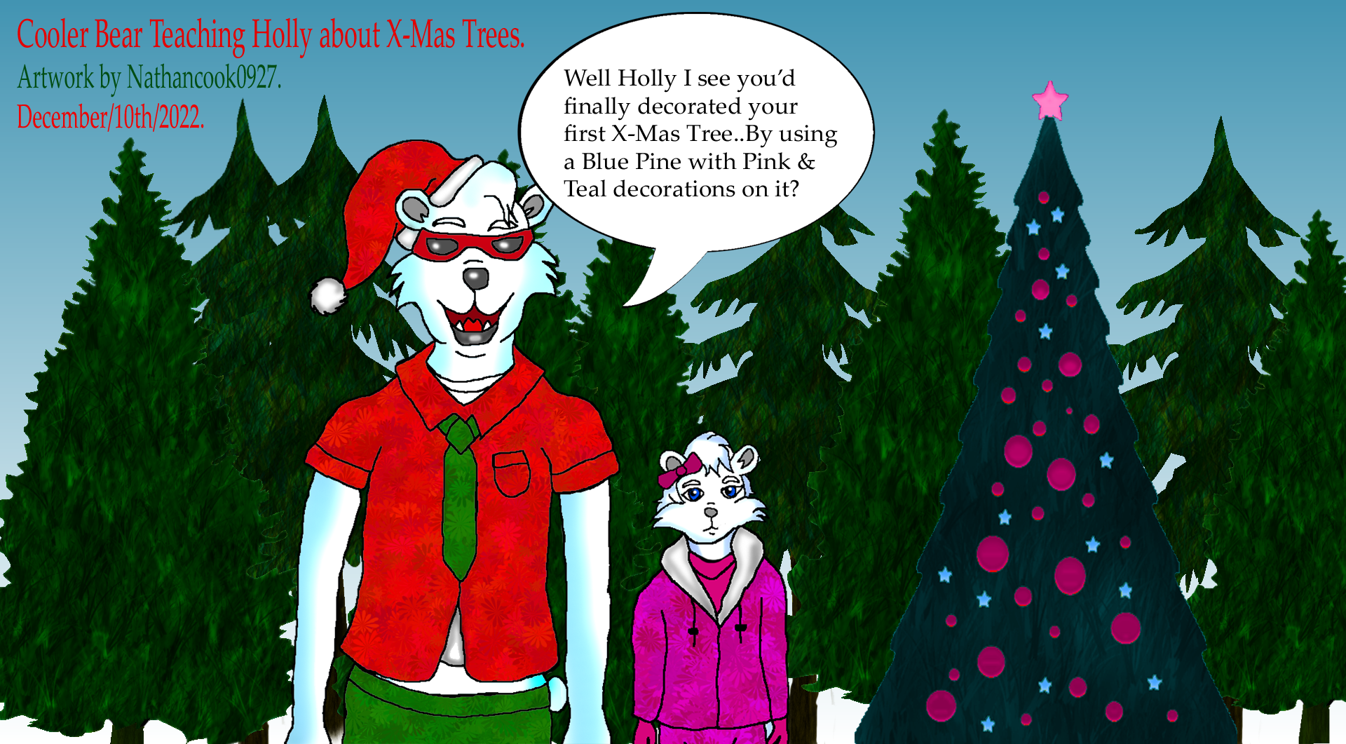 Cooler Bear, Delilah & Holly Belongs to Me Nathancook0927. #Anthro #Polar_Bear #Christmas #Santa_Hat