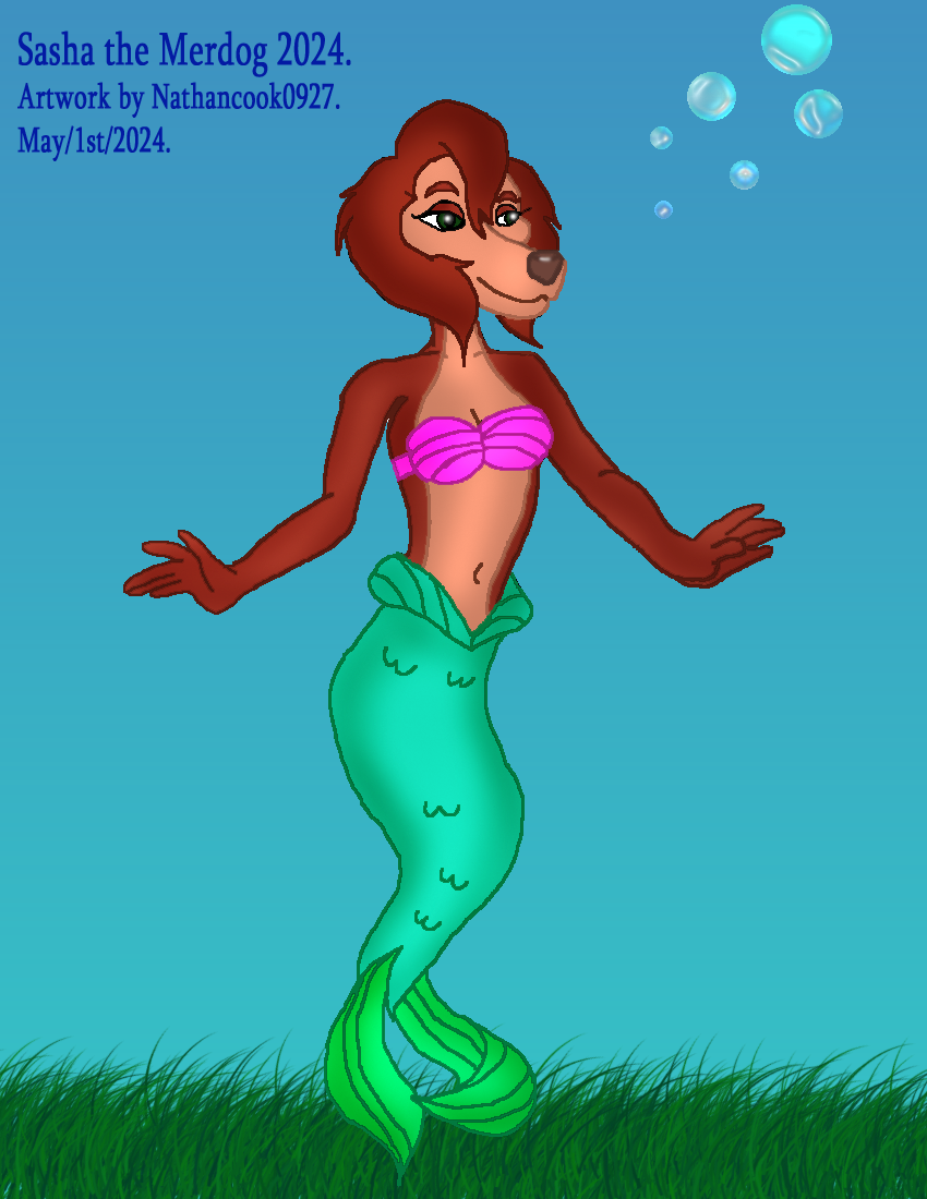 Got to work on a New Artwork of Sasha the Merdog for years Mermay for 2024, Since I've been wanting to work on it for some time. All Dogs Go To Heaven 2's Sasha La Fleur Belongs to MGM Studios. Disney's the Little Mermaid Belongs to Disney.