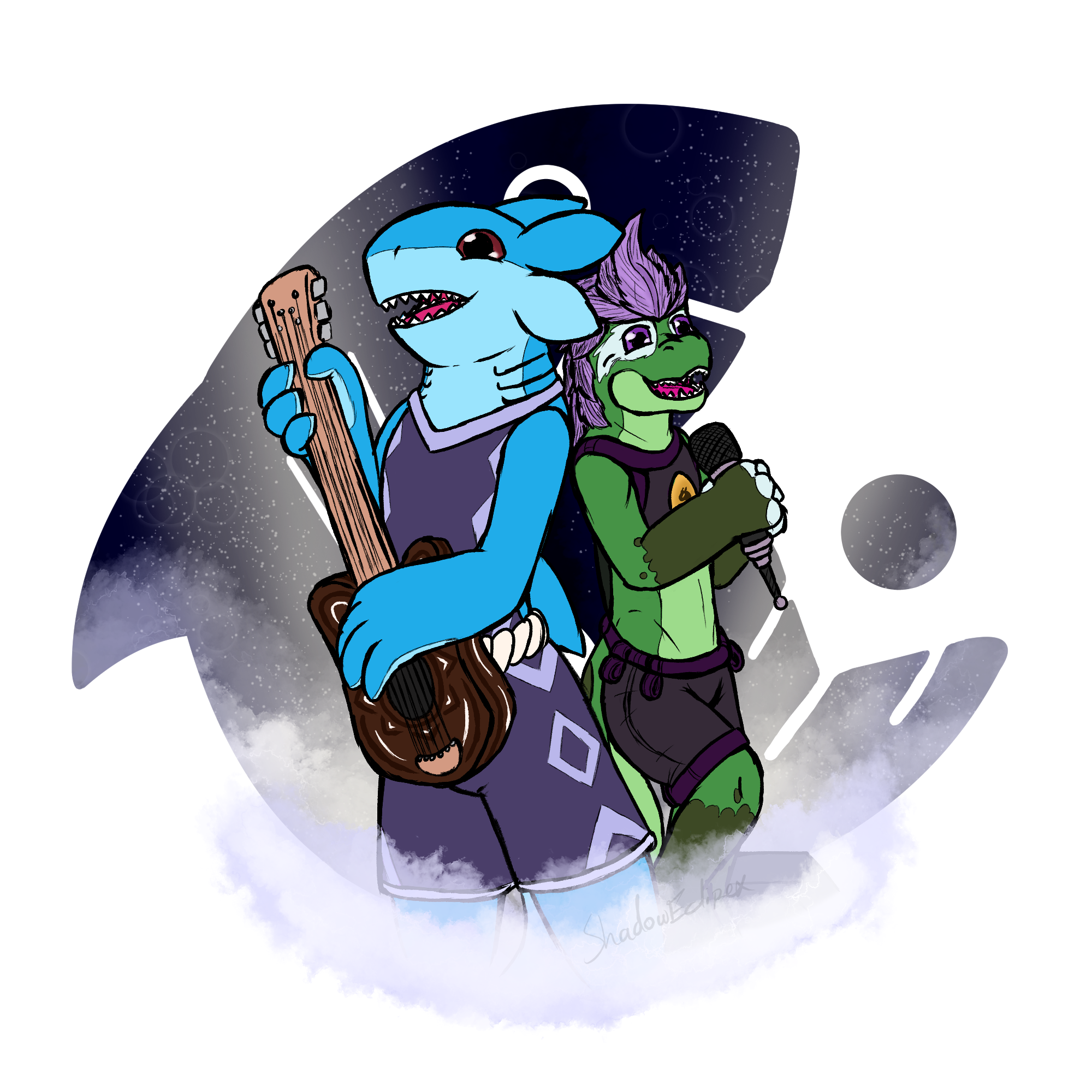• Well techicnally more like a duet than a full band. I couldn't com eup with much for this prompt, so drew the adopted siblings Lott and Vesper, probably at some sort of party or doing some kareoke.