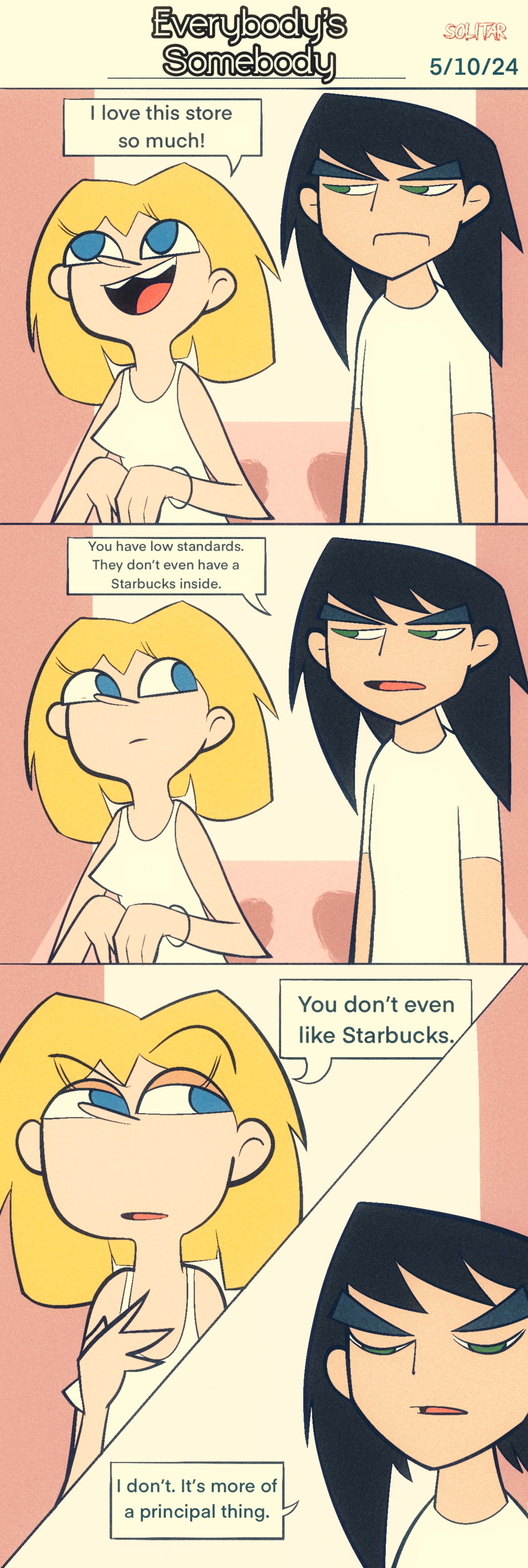 I wanted to draw Hypna in the starbucks meme w/ the apron but I'm really not into lactation so! She's non-dairy lmao, there's definitely other baristas that can help with that though.