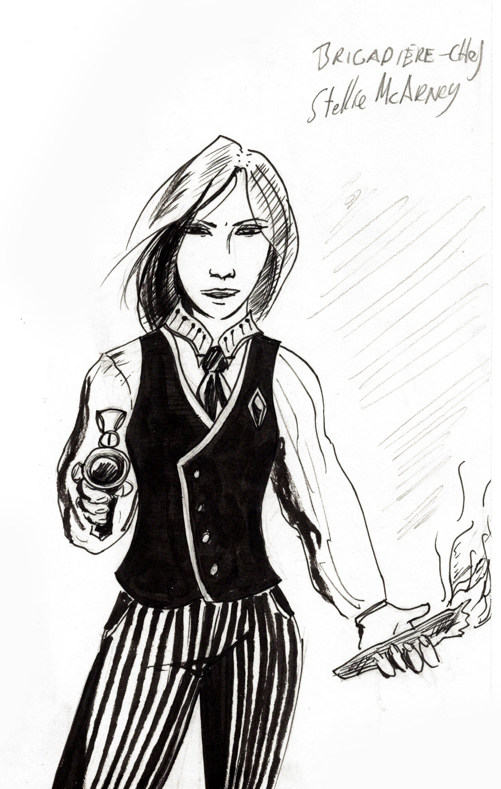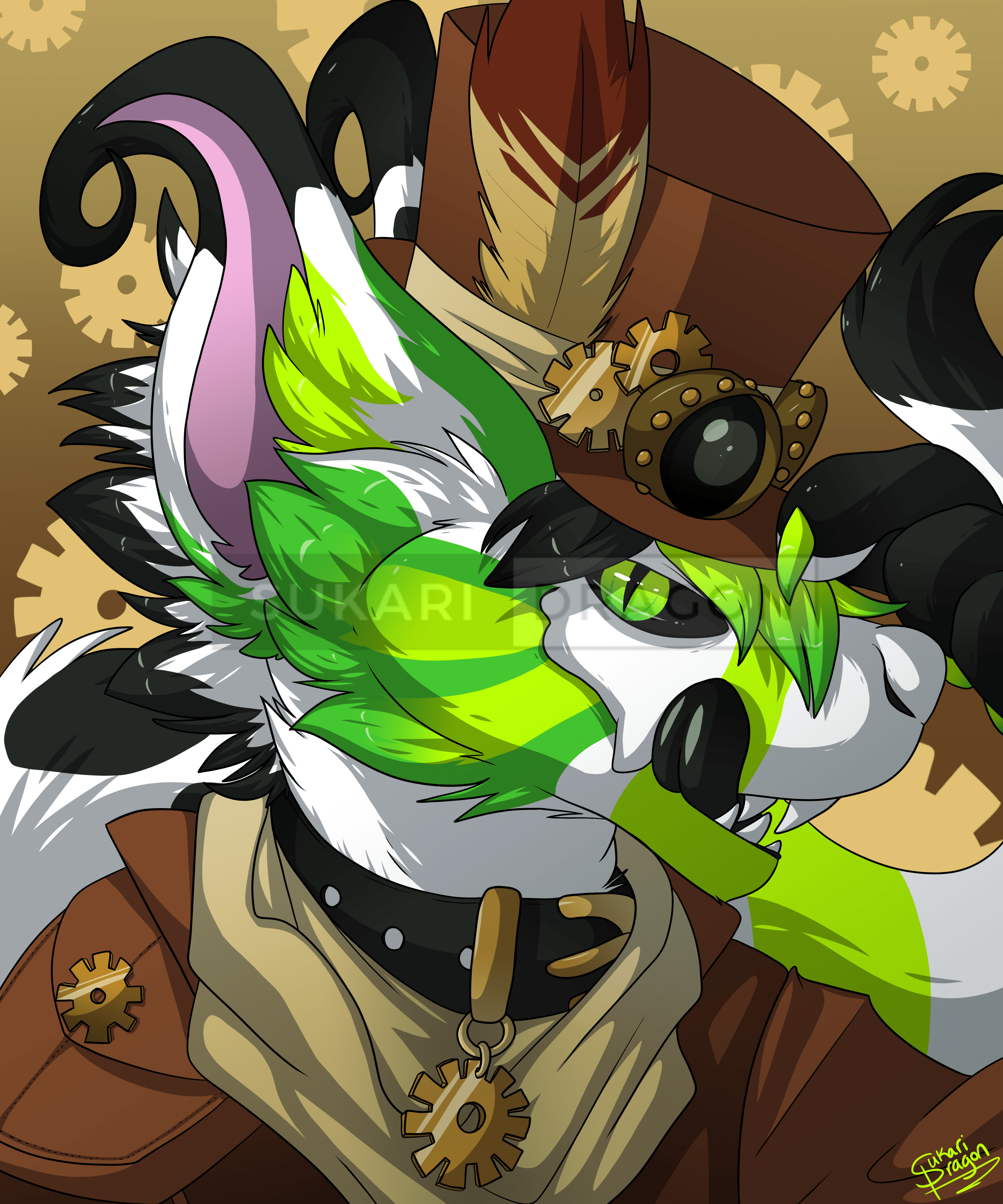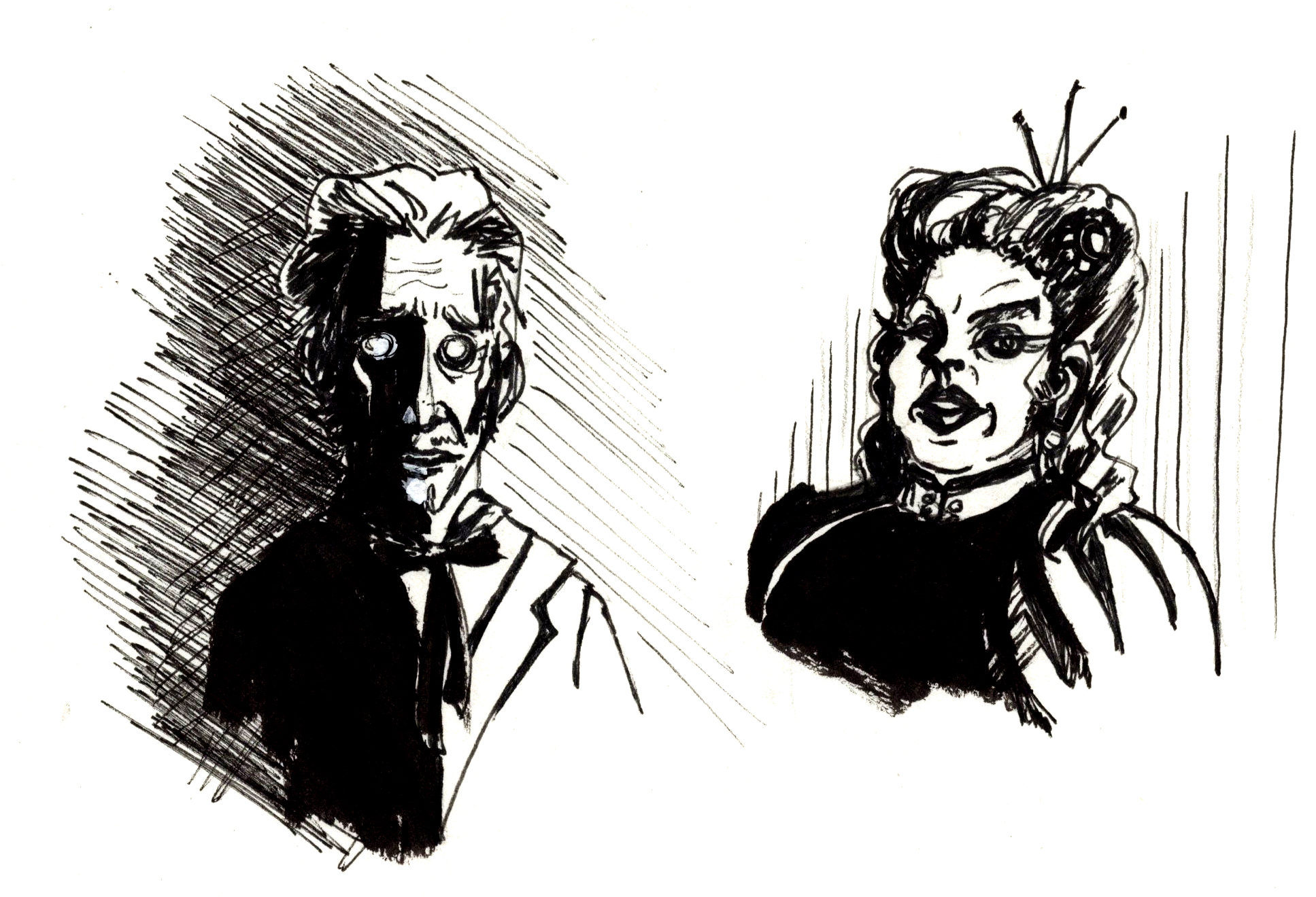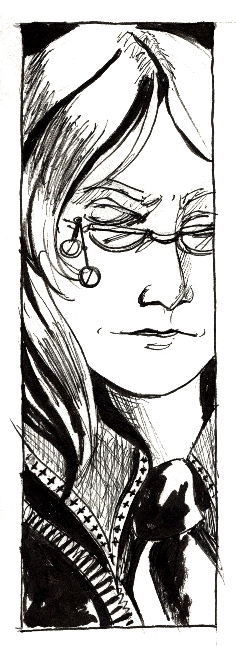Nous devions faire un auto-portrait pour un magazine autopublier. Je faisais beaucoup de dessin d'influence steampunk à l'époque. Ce style est devenue peu à peu ma signature en préparation vers les projets de fin de programme. Les yeux blancs morbides ne sont pas resté cela dit.