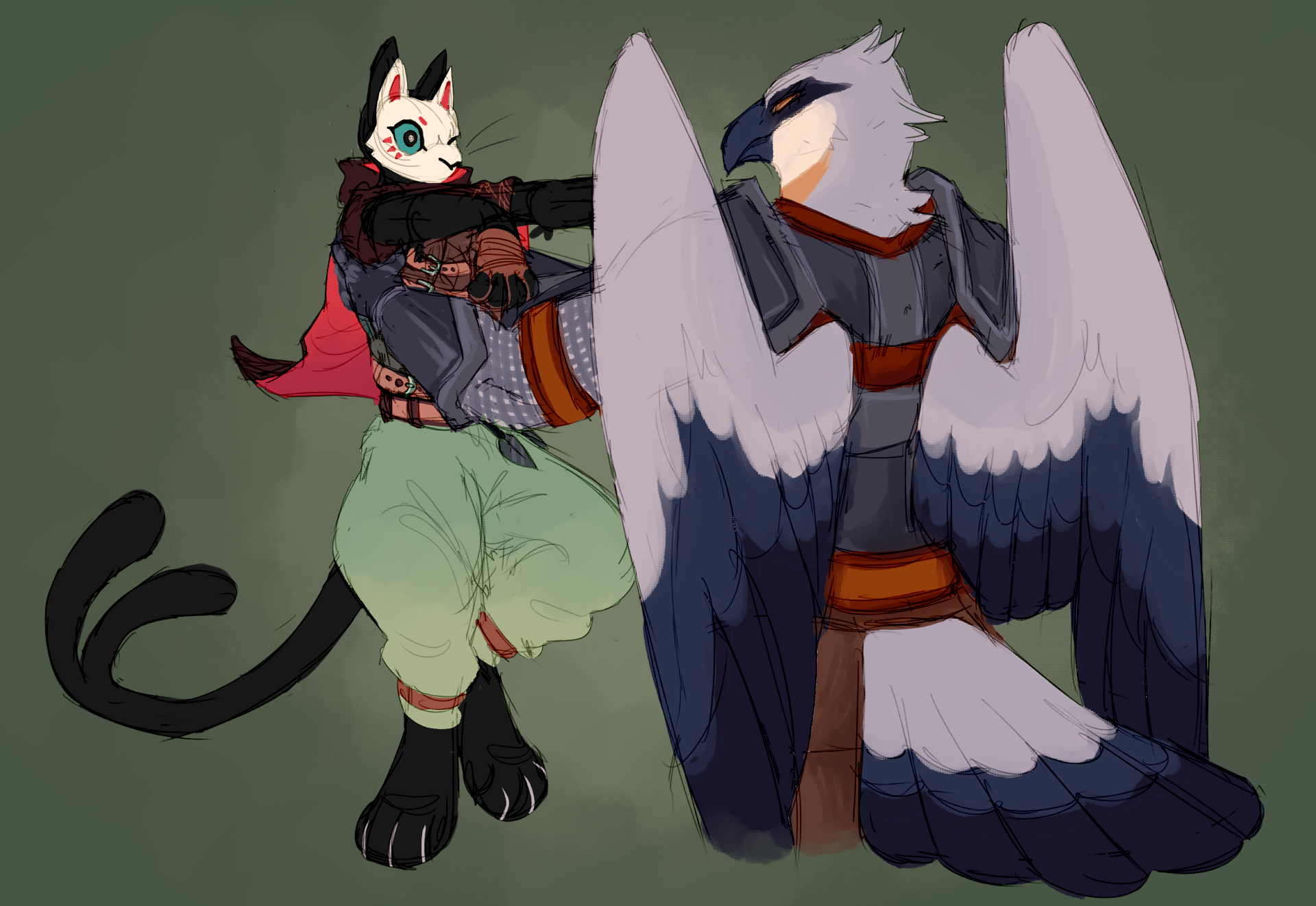 my bestie and I's DnD PCs! The tabaxi belongs to them @ Terminalvortex on tumblr :3