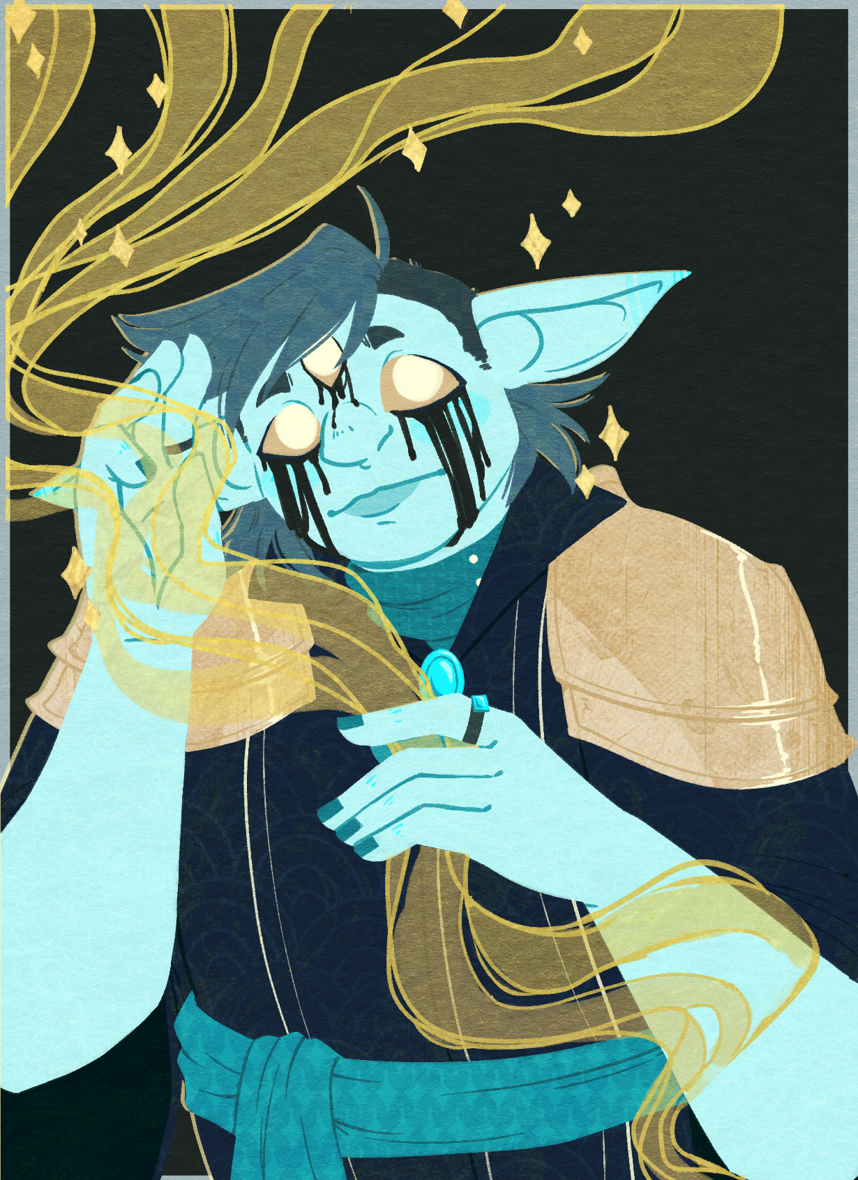 now for a lil bit of personal art, of myLunacid oc vex I'd been wanting to do a color palette themed piece for Vex, plus a chance to test out the texture pack from @tombofnull (this ones w/ the water color paper swatch)