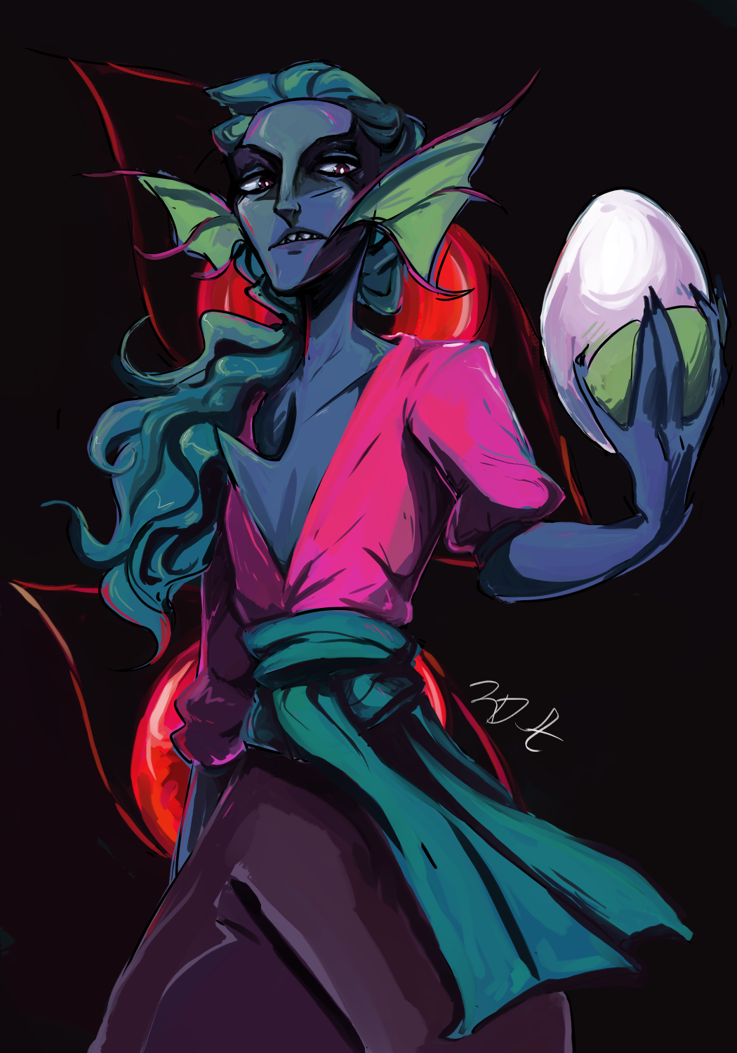 • A piece I just finished of Shiver as Goddess of Power/Oracle of Seasons, Din! I originally started this in May after the Zelda splatfest ended to celebrate team power winning (despite me being on team wisdom lol) but went a couple months without working on it because I became too addicted to TotK. I'm pretty proud of this particular piece!