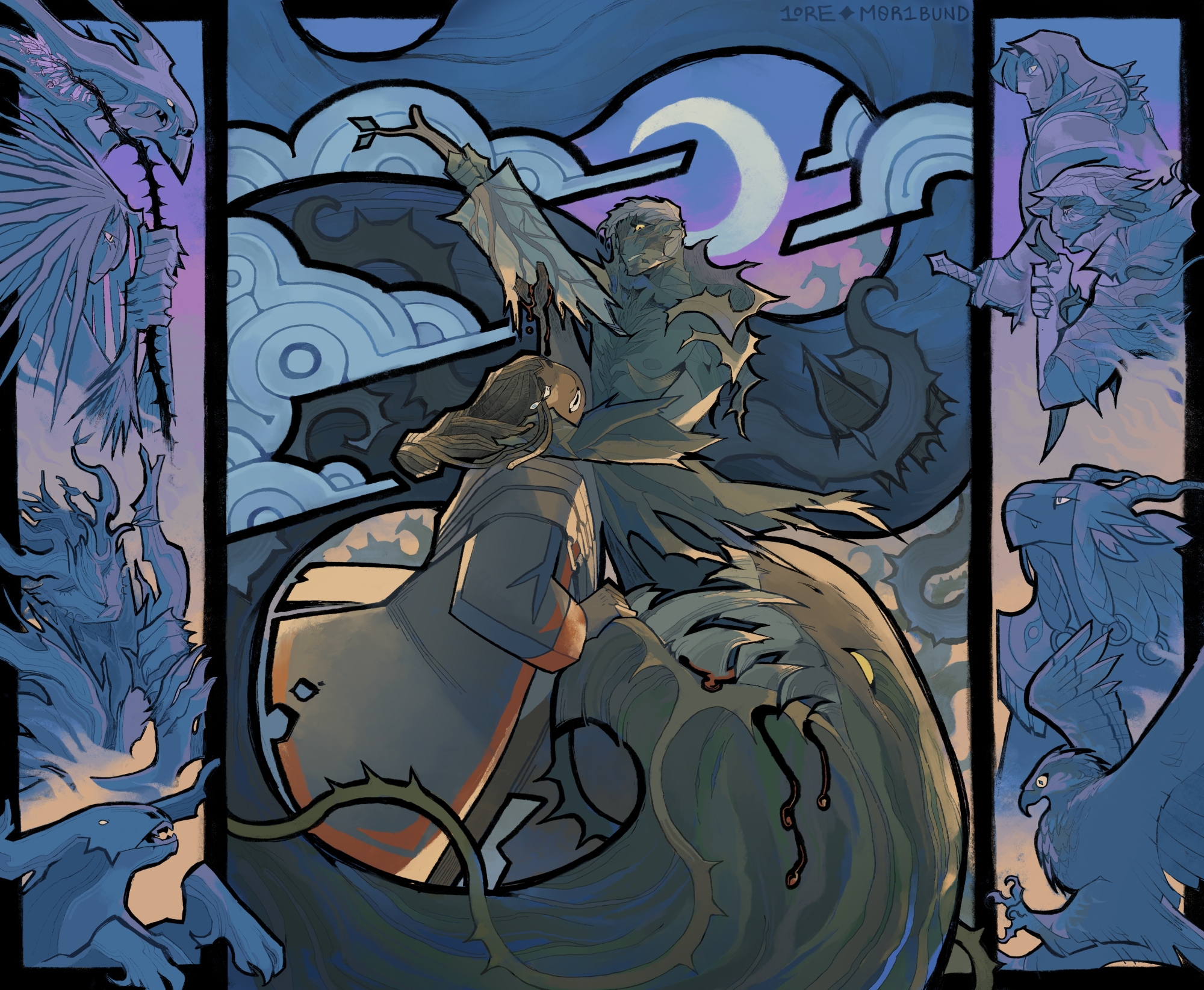 Her carapace has many copper-based spikes that conducts the shocking element at will and not only influence those around her with a gravitational pull but also all kinds of conductive and magnetic metals that lurk under the earth's crust. While a harbor for such raw arcane control, she chooses the life of a researcher as she doesn't want her secret status of a highly powerful Ancient be at risk of being discovered via living the life of a Monster Hunter. While living most of her time in solitude, she still has those she calls friends living across the land--though most live the frozen lands of the North in the Hunter base of Snowdin. Least she still has her radio to get into contact with any of them, or vice versa, during her travels in her love of discovery and have tales of which to share.