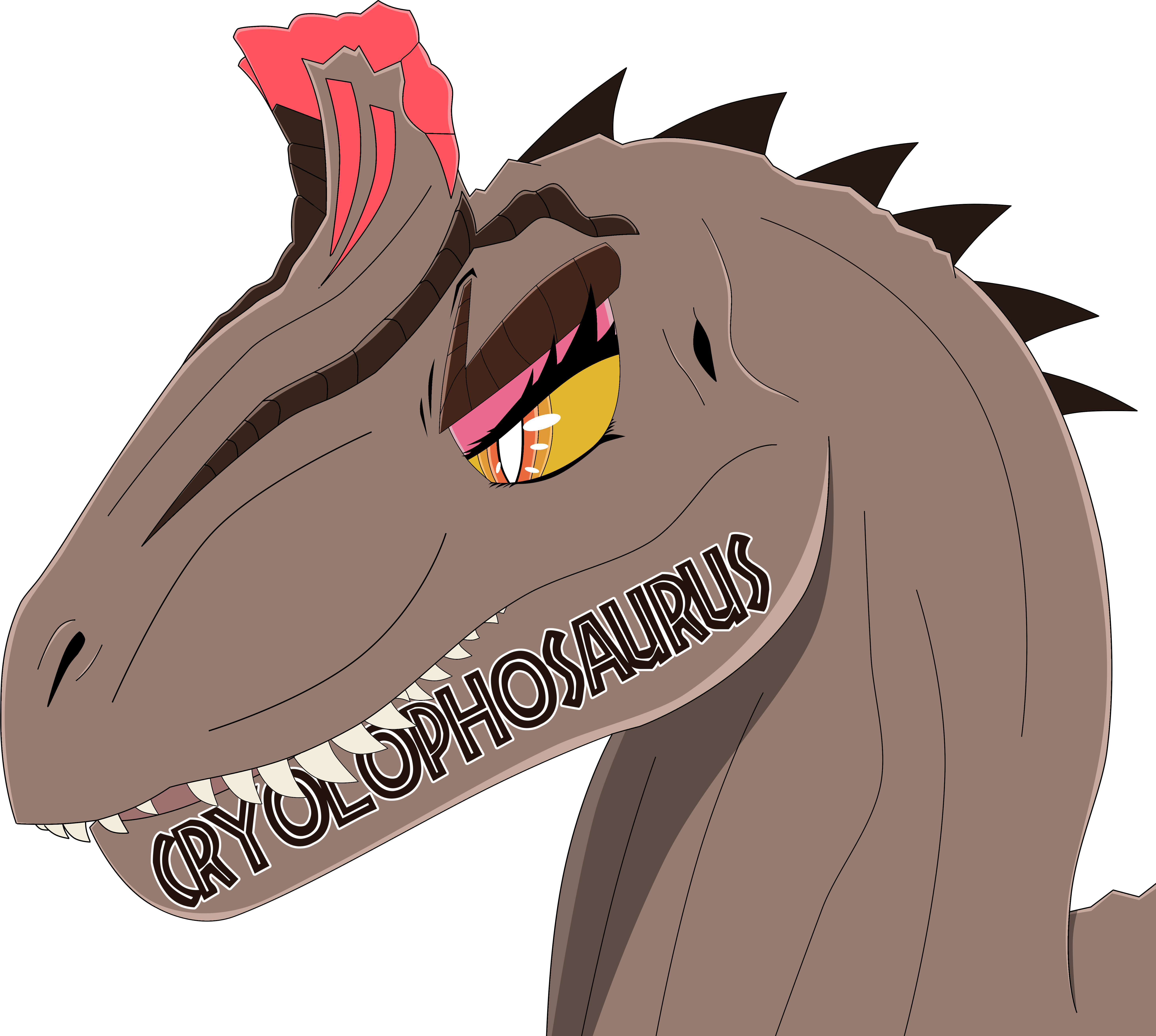 This is a redraw of the female Cryolophosaurus that I drew back in 2016, not counting the easter artwork from 2022. I just feel like drawing her again recently. And maybe over time, I'll redraw dinosaurs I've drawn over the years. I gave her a lot more details, especially the crest on top of her head. I even darkened her skin a little bit. Doesn't she look gorgeous? Facts about Cryolophosaurus She was first discovered and named back in the 1990s, the first dinosaur to be discovered in Antarctica, and was the largest carnivore of her time. Her name means "Frozen Crested Lizard." She's known for the large crest on her head which is compared to Elvis Presley's pompadour. For that, the dinosaur is nicknamed Elvisaurus. The crest is probably used by males to attract females or to appear intimidating and scare off other creatures.