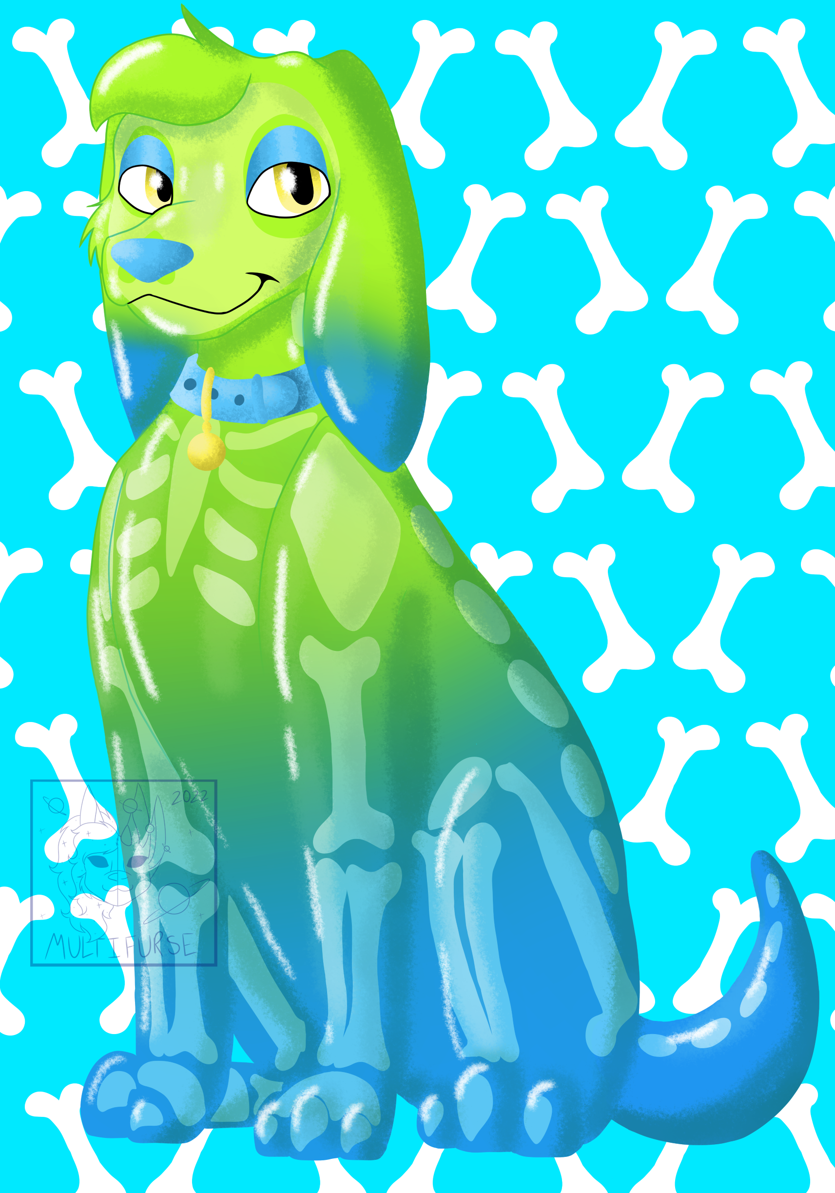 Wheeee this one was fun! A little challenging to make him look transparent so his bones could be seen, but I had fun practicing vague anatomy and bone structure!