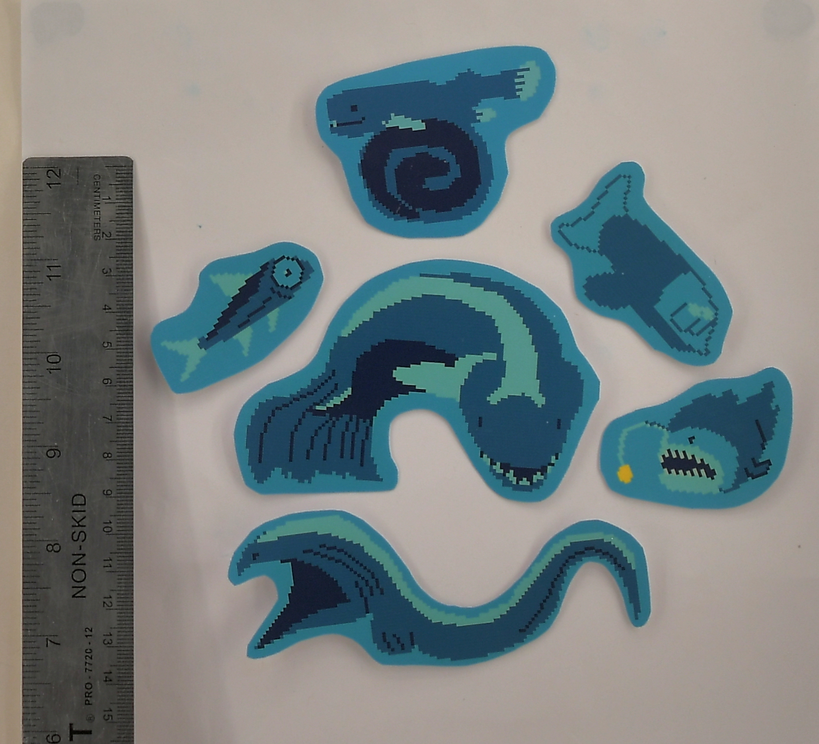 • A set of stickers based on those deep sea fish I drew in Aseprite a while back.