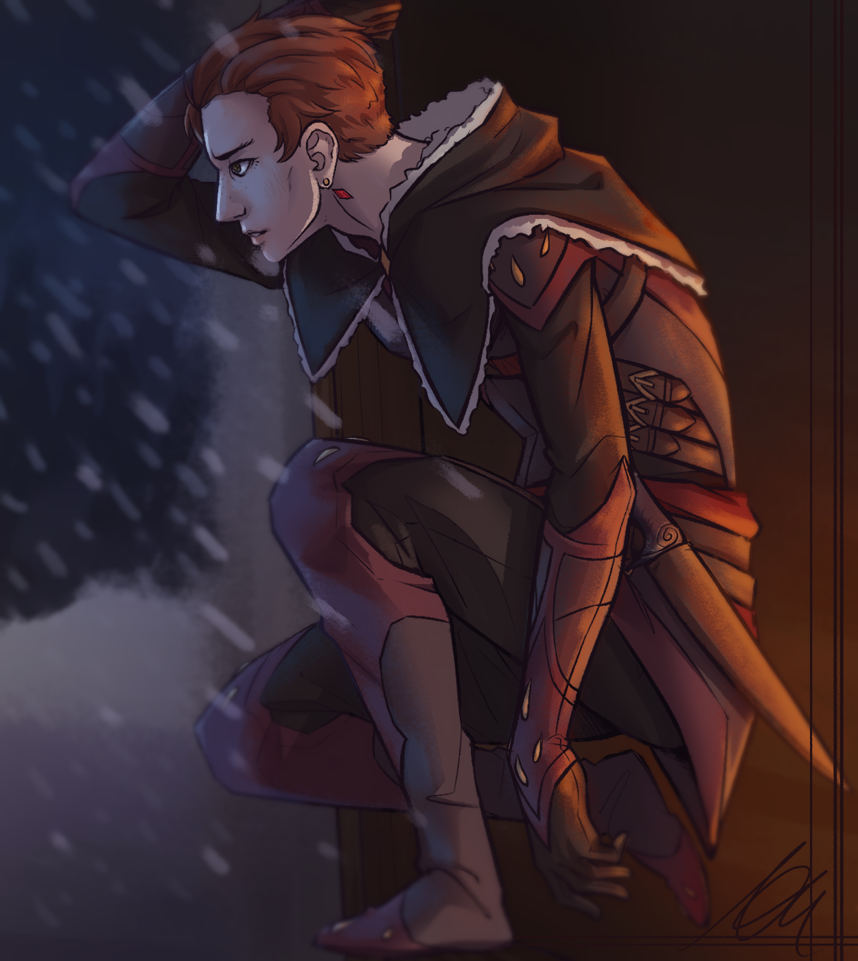 My depressed Dark Brotherhood assassin with a classic tragic backstory lol. He's my baby boy and my first OC when I started making art again, so he's very special to me.
