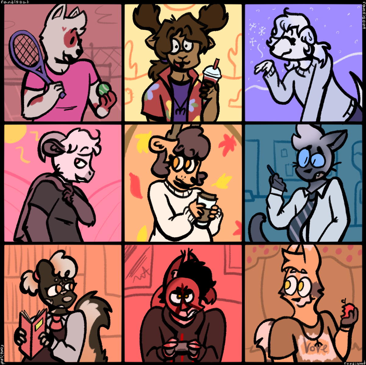 decided to draw a bunch of my neglected ocs because i feel SO BAD for never drawing them im so soryr their names: top left: Goofball top middle: Nathan top right: Bluebell middle left: Calyx middle: Autumn middle right: Scrawl bottom left: Cayenne bottom middle: Churrasco bottom right: Kawfè okay now prepare to not see them for another 200 years <3