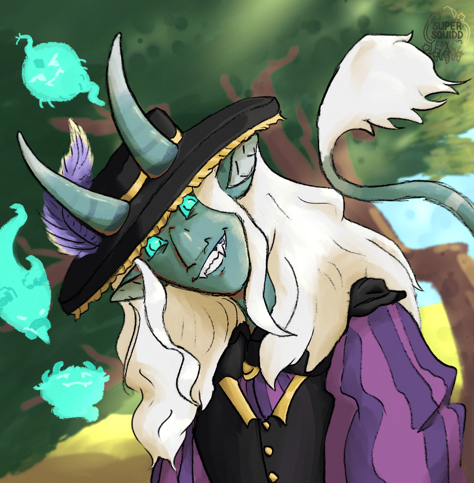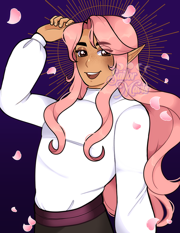 • My OC Cosmo DeLuna, Mavis's older brother! He's a witch and bard, and isn't afraid to be in touch with his feminine side I really want to draw more of him, so this was a piece to update his design and grow more comfortable with drawing him, because I feel like I don't give him enough attention. ♥