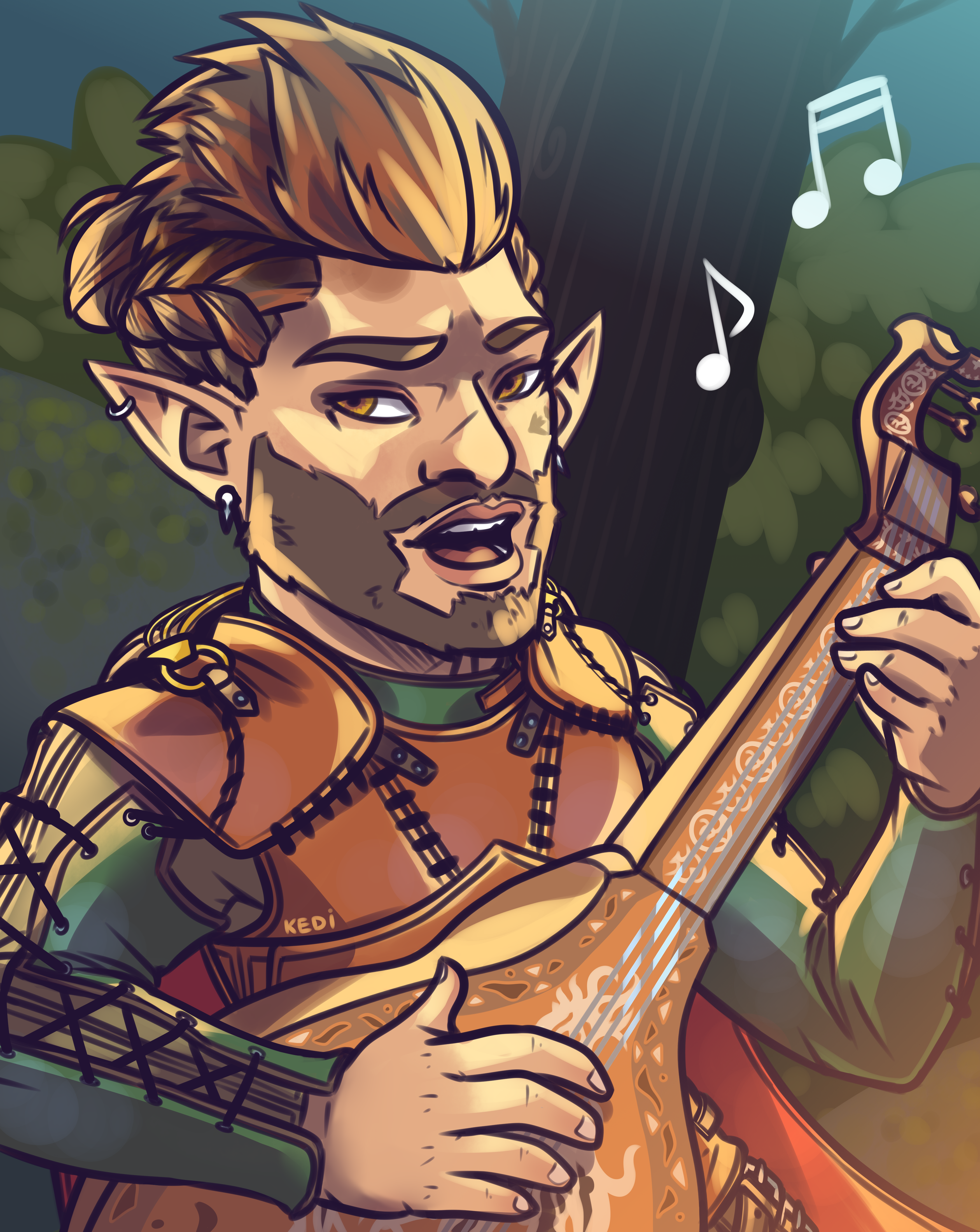 Bexley Strahan, tiefling bard and the most annoying guy at the local hardcore gig! his [playlist](https://open.spotify.com/playlist/7uHm3eBe0olYJG0c3FpHlH?si=b6d757defbcd4ea9), for any interested parties