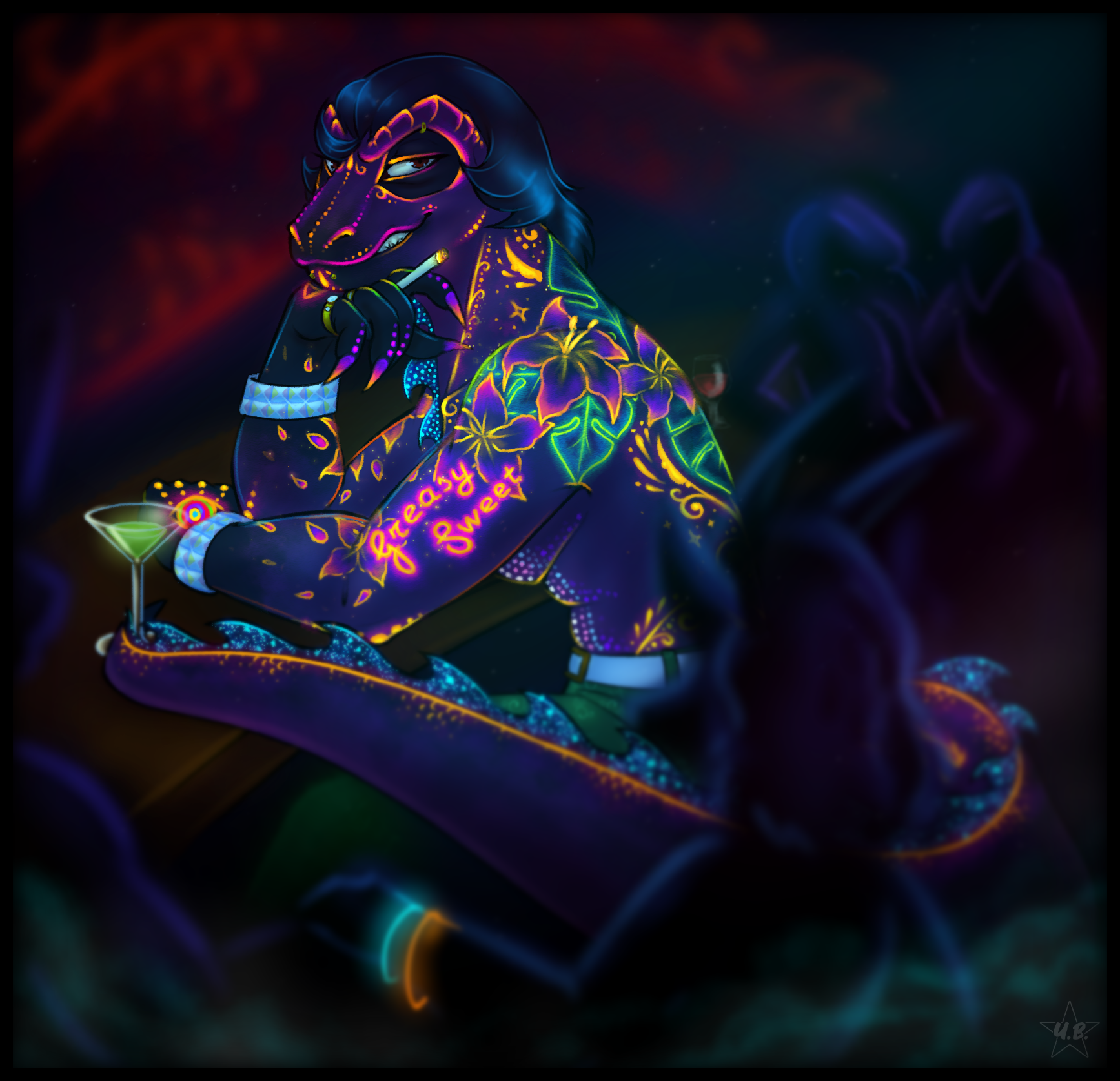 Blacklight pics I drew last night in stream~ [EnergizedGoop](https://www.twitter.com/energizedgoop) - [Flexico](https://www.furaffinity.net/user/flexico) - Torque is my Monster Yeen OC