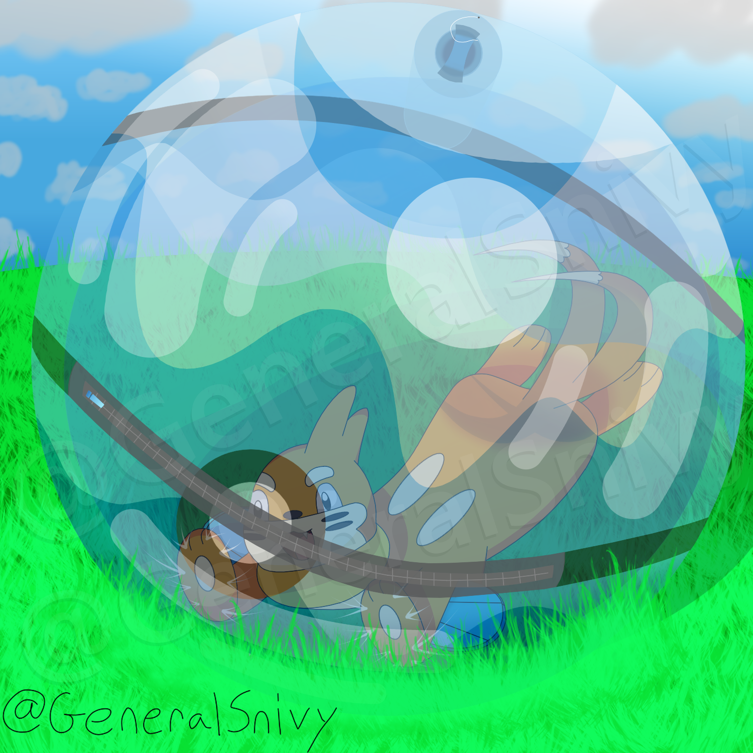 The other day, Buizel and his trainer were playing at a local Pokepark where he was playing with his favorite beach ball that looked like a Dive Ball. While playing ball with his trainer, he hit his beach ball too hard and accidentally sent it flying away towards the trees and bushes, located quite a ways behind his trainer. Buizel went to retrieve his ball, only to have found it flat and flabby with punctures all over it and sticking out of some sticker bushes. Seeing this, he sat on the ground, devastated, and began sobbing uncontrollably. When his trainer heard him crying, they came running to their Buizel's side as fast as they could to make sure that they were okay. When they got to their Buizel, they found him on the ground, crying, and after looking around to see what was wrong or who hurt him, they found Buizel's beach ball in the sticker bushes looking like a pin cushion and beyond repair. Seeing this, Buizel's trainer made their way through the sticker bushes to retrieve Buizel's beach ball. It took a lot of effort as the beach ball was stuck onto the sticker bushes real good, but they got it off of there eventually. They then examined the ball to see if it could possibly be repaired, but it didn't take them long to see the damage done by the impact on all the sticker bushes where it landed, making the beach ball unfixable. They then stuck the flattened beach ball into their backpack, returned to Buizel's side, and then explained what happened to the beach ball and how they couldn't fix it. As Buizel continued to cry, his trainer picked him up, held him in their arms, and walked to the nearest Pokemon Center so that Buizel can let out all of his tears and his trainer could figure out where he could buy their Buizel a new replacement ball. While sitting down inside the Pokemon Center, they continued to hold their sobbing Buizel as he layied down across his trainer's legs, trying to comfort him as he lets out his feelings. While doing so, a passerby noticed the sobbing Buizel and asked his trainer if something was wrong. Buizel's trainer then explained what happened earlier that day and why their Buizel is crying. Once they finished explaining, the passerby shared their thoughts and then gave Buizel's trainer a flier, advertising a new store that just opened up not too far away from their current location. On the face of the flier, it advertises these gigantic balls that are so huge that an average sized human can fit inside and roll around in it effortlessly. The picture displayed a man and a Dewott rolling around in 2 separate spheres side by side, looking happy as Shellders as they rolled along together. After looking at it for a bit, they stuck the flier in their backpack and continued to comfort and pet their Buizel until he eventually fell asleep. The rest of the story can be read on my[ DeviantArt page for this drawing here:](https://www.deviantart.com/therealgeneralsnivy/art/1085147555) I haven't drawn a Buizel in over 2 years. The last time I drew one was when I was still using a mouse to draw before I got myself a proper drawing tablet. Drawing them again took a bit of effort, considering the pose I was going for with them and what object I was putting them in. Before I began this drawing, I did a bit of research of the object in question and after doing a Google image search with the phrase "...before 2021" at the end of it to prevent any AI generated slop from showing up in search results, I learned from one of the search suggestions that the ball I put Buizel inside of is known as a zorb ball. After getting an image of one to use as a reference, I did a regular Google search on how to inflate one of those things so that I would know if I needed to add a valve to the zorb ball or not. Not only did I find the answer I was looking for, I also found its history, like where it originated and where it was first invented. During my research, I did learn that zorb balls are clear and don't have fancy designs, like what I drew here with turning Buizel's zorb ball into one that has the Dive Ball's design. I did that as a creative choice and to make it as believable as possible as if to ask, "What if zorb balls existed in the Pokemon world? Would they have the same designs as seen on Pokeball designed beach balls, or would they not?" Throughout the entire process, I had to figure out how to draw in 3D on a 2D plain, which I did blindfolded, figuratively speaking. I went by feel and used my own judgement to figure out if what I drew made sense and was logical while also keeping in mind how the zorb ball was going to look later when I put Buizel inside of it. It took a lot of work and playing around with transparency to get the desired look for the zorb ball. It may not be perfect, but I am very happy and proud of the results!