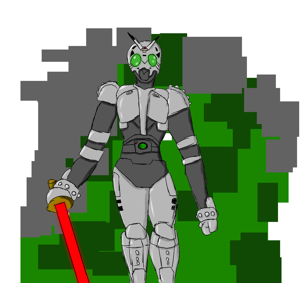 un dibujo de Shadowmoon, villano principal de Kamen Rider Black, un diseño mecánico tan genial, para hacerle contraste al mas orgánico de Black, también su espada tiene el nombre mas edgy badass de toda vida, el Satansaber, tan putas genial!
