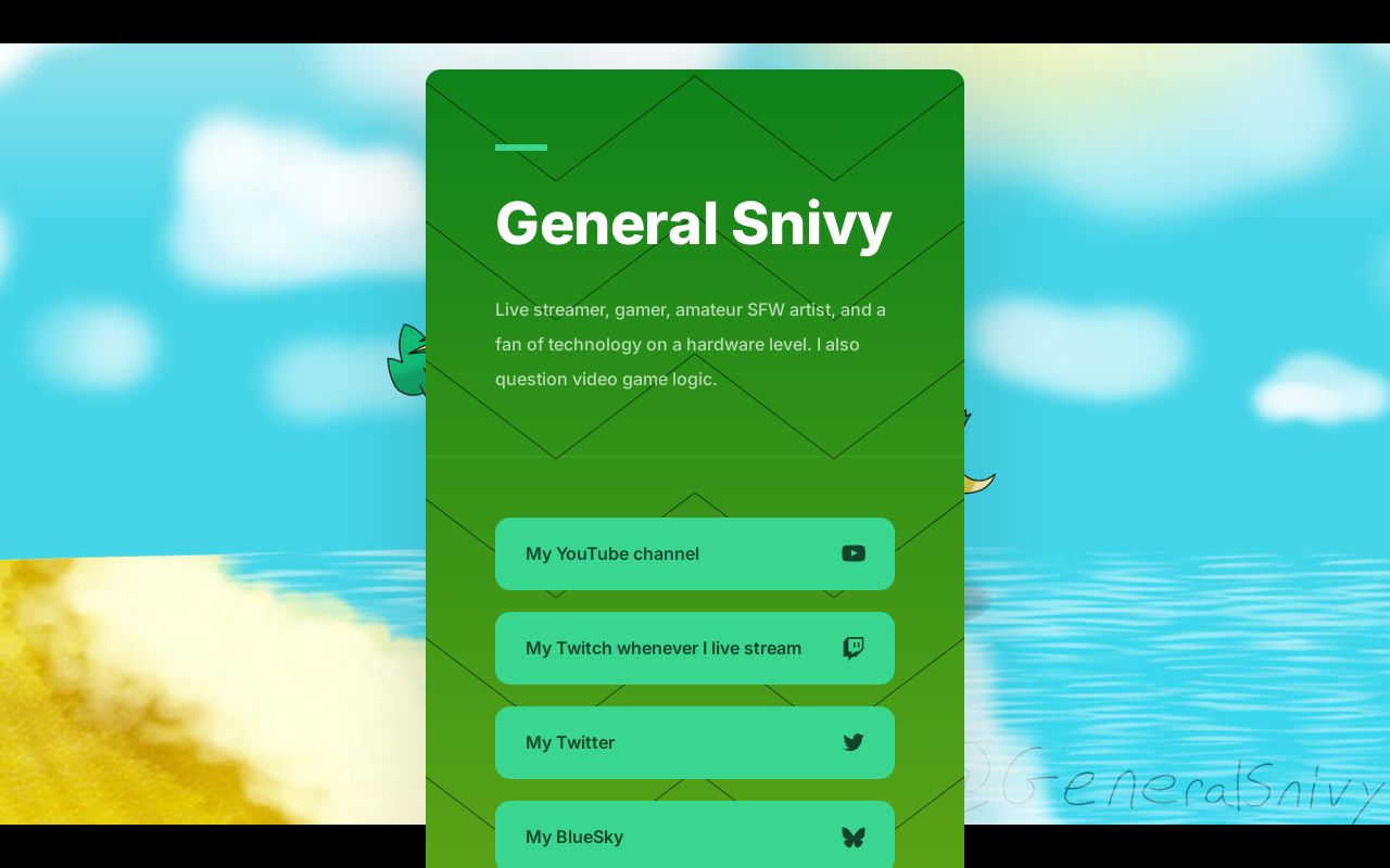 If you want to continue following me and my art journey, check out my Carrd to see where I post my artwork and also check out the gaming content I posted as well. Here's the link: https://generalsnivy.carrd.co/