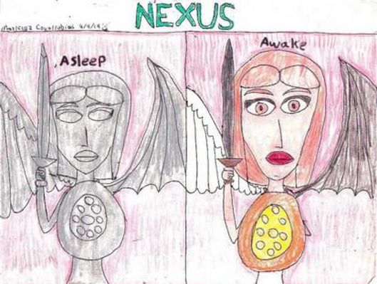 Name: Nexus Species: Nephilim Gender: Female Occupaiton: School mascot and Guardian. Age: Immortal Powers and abilities: Clairsentience – Nephilim can see the halos on angels. Enhanced durability – Nephilim can withstand attacks from angels and seraphs such as Metatron and Castiel, respectively. They can also shield themselves from magical attacks. Superhuman strength – A Nephilim's strength far exceeds that of normal angels. Teleportation – Nephilim, like angels, have wings and are capable of teleporting. Superhuman Intelligence & Perception - Nephilim possess enhanced intuition, pattern solving, information storage and retrieval, and logical and philosophical structuring. As a result of the angelic process they have undergone, they are capable of knowledge, wisdom and comprehension beyond the human ability to understand. Their intuition is heightened to the degree that their hunches are almost always correct and also allows them to detect the use of magic and supernatural beings. Nephilim have a perfect memory with the ability to recall of everything they've ever seen, read or heard. Omnilingualism - They possess the ability to innately speak, write, understand and communicate any language they've never heard before, sign language, illegible words, and backwards speech and writing. They could even communicate with animals or read body language. Superhuman Combat - They can even acheive natural proficiencies with all kinds of weaponry and combatant styles without the need of special or long-term education. Precognition - Nephilim have the supernatural ability to experience simple or prophetic visions of the future. At first, they are merely capable of experiencing vague dreams of the future while asleep. While in their waking state; they experience vivid premonitions, either through physical contact with a person. They also gain an acute intuitive insight; meaning their able to sense the immediate actions of people and things in their current location. They can also use this ability to fight and sense their opponents attacks and movements, making them deadly fighters. Empathy - Nephilim are able to sense and feel the emotions or feelings of other sentient life forms in their presence. They are able to instantly know when someone is lying by hearing the frequency of their voices. This lets the Nephilim establish psychic links with others; even with individuals who can understand each other and become friends or allies almost instantly. This can even go as far as using the link as a tracer to locate those the Nephilim connect with through their feelings. They will normally hear the cries of the wronged but they can learn to harness the power as they grow, using it to communicate with others. Clairvoyance - Nephilim possess supernatural senses that allow them to percieve things that humans connot. They can see invisible beings, they can see demons in their true forms even while said demons are in a human disguise or possessing a vessel, and they can see through dimensional barriers. Longevity - Nephilim have a slower aging process and while they will die eventually, can live up to five hundred years, although most of them never make it that far considering how often they're hunted. Some can be ageless if they are born to a more powerful angel. Superhuman Speed - Nephilim are said to be faster than any non-supernatural creature and can run at an extremely high speed. This allows them to easily outrun any human or monster, and are capable of blurring, which makes it nearly impossible for a human to perceive their movements when they are sprinting or moving at full speed. The reflexes of a nephilim are similarly enhanced and are far greater than normal. In combination with their speed, their reflexes allow them to dodge almost any attack, or even gunfire. Nephilim can go so fast they become an invisible blur that can disappear for creatures that even have sharp senses and high speed. Superhuman Agility - Nephilim's agility, balance, and bodily coordination are all enhanced to levels that are equal to, or in most cases beyond, the natural physical limits of even a Olympic athlete. They can also easily perform any complicated sequence of gymnastics stunts such as flips, rolls, and springs at speeds and angles that would be highly difficult or impossible for a ordinary human. Superhuman Durability - Nephilim's body is physically tougher and more resistant to injury than the body of a normal human. Although they can still be damaged and killed by knives, stabbing weapons, bullets, shrapnel, and physical impact, their bodies hold together much better than normal. They can withstand great impacts, such as powerful blows that would severely injure or kill a human, falling from a height of several stories or being struck by a opponent of similar or greater physical strength, that would severely injure or kill a normal human with little to no discomfort. Choice for the telepathy voice: Uma Thurman.