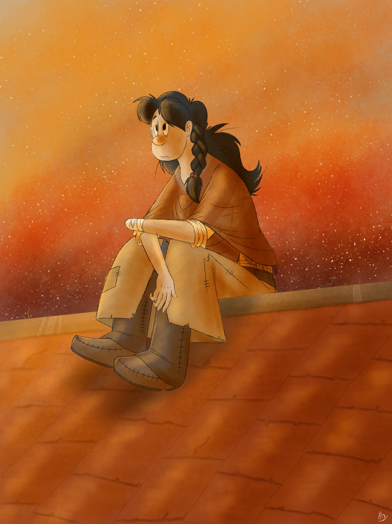 Pizi wondering what it would’ve been like if her family hadn’t been eaten by dragons… and if she and her friends lived in a better place Really didn’t know how to handle this background so I went the cheap way out with a starry sky lol