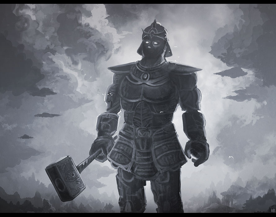 • Just a speedy painting of a Felaryan Titan. Yes I won't deny there is a clear Shadow of the colossus influence here XP It's a game that marked me a lot ^^