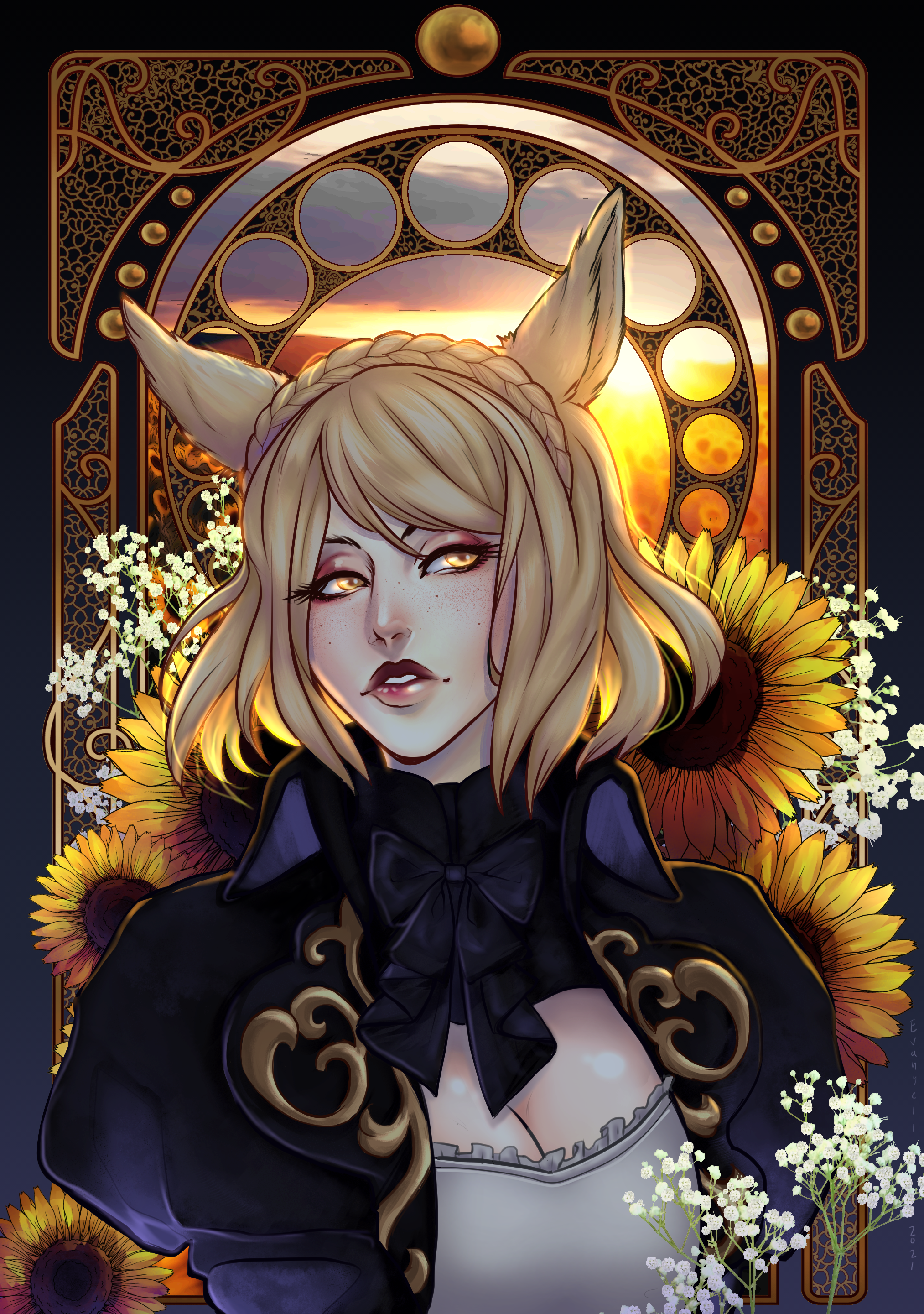 One of my favorite pieces. Bust Commission for Serris Le'omend of their beautiful Miqo'te in a full render Art Nouveau style frame. 2021