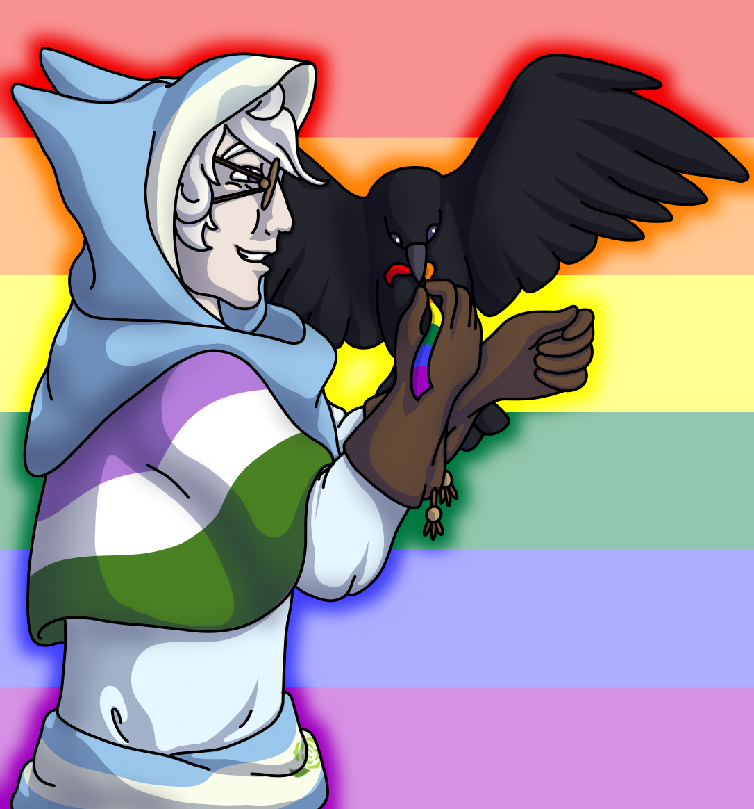 I love this cheeky bastard so much. Tielo is an elven knight who specializes in the crossbow. They're a complete goober who reacts to every situation with a joke or twelve, always has a witty rejoiner on the ready, and is always ready to turn that cleverness against a jerk if said jerk is threatening their friends. Tielo also makes it a point to present as ambiguously as possible, and delights in point blank refusing to answer any questions about their gender or pronouns.