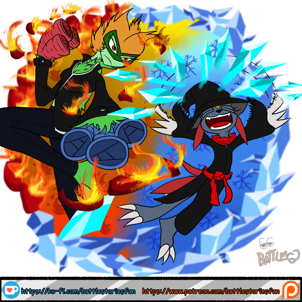 EARLY ACCESS, FULL RESOLUTION, SKETCH VERSION AND SPEEDPAINT VIDEO ON SUPPORT PAGES Backer Reward for a friend on discord.........that I could only get done this month, even tho it was for April!...I got busy, alright?! Nothing much to say here! Depicted here is Daicey the Weavile together with Rose....the Roserade. One's an icy, happy go lucky and friendly wizard, the other's a hot blooded, acidic and angry fighter. And yet they go surprisingly well together! Sometimes, the strongest of bonds are between the most opposite of people, no? Done entirely in krita in 3 hours or so! Enjoy, ya weird salamanders. More stuff here! https://linktr.ee/battlestoriesfan