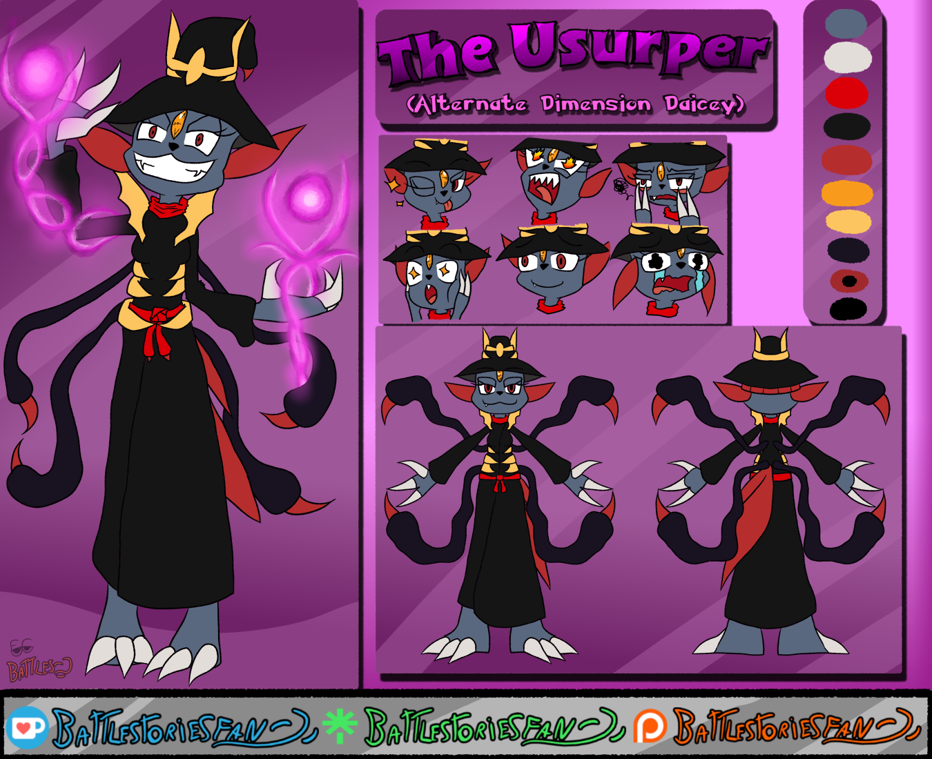 EARLY ACCESS, FULL RESOLUTION, ALTERNATIVE RENDERS AND TIMELAPSES ON SUPPORT PAGES Commission for someone on discord! Finally, a reference sheet. Something short, simple and that I'm used to it! And here, we have his character Daicey the Weavile...or rather, an alternate dimension version of her, one where she, as the name implies, stole the powers of Giratina and became an all powerful magician! But the problem is....you can become as powerful as you want....it won't ever take away from the cuteness of being a smol weavile... Done in about 3:44 hours in krita with zero 3D posing, with the name being made in blender because Krita's text tools remain terrible. Enjoy, ya weird salamanders! More can be found here! https://linktr.ee/battlestoriesfan