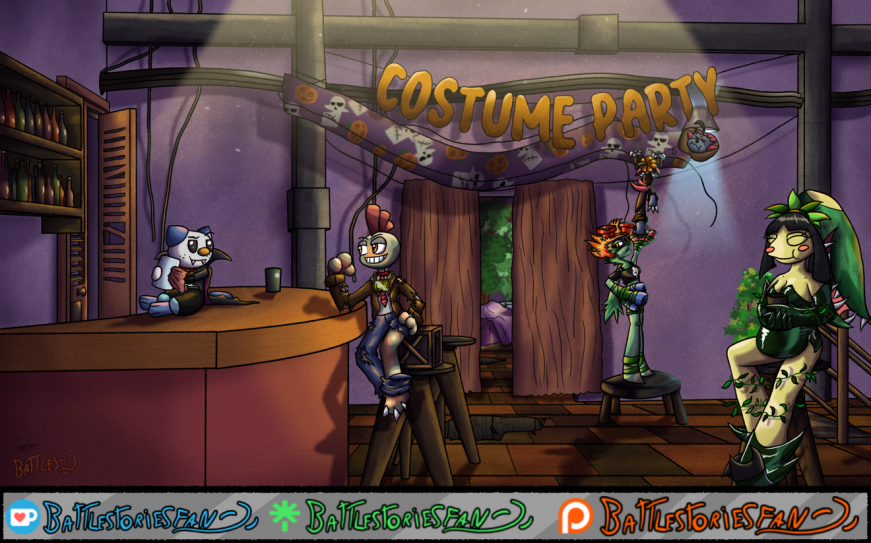ORIGINAL TITLE: A spooky costume party ORIGINAL RESOLUTION, BEHIND THE SCENES AND EXTRA GOODIES ON SUPPORT PAGES From a simple 1 hour picture to a 15 hour behemoth of a project, that's how it go with me. Commission for a discord friend, finished right on time for Spooky Day! Done in about 15 hours, with posing done in Blender and art done in Krita! Bon-Bon the Mawile, Moneybags the Scrafty, Spirits the Oshawott, Rose the Roserade and Daicey the Weavile have decided to organize a costume party at their little club, and decorations are almost done! Here's hoping they can enjoy the party... (Can y'all guess what the costumes are? ;D ) Enjoy, ya weird salamanders! Follow my other accounts too! https://linktr.ee/battlestoriesfan #mawile #roserade #weavile #scrafty #oshawott #originalcharacter #anthro #anthropomorphic #costumeparty #halloween #spookday #spooky #art #artwork #digitalart #sfw #cartoony #stylized #pokemon #pokesonas