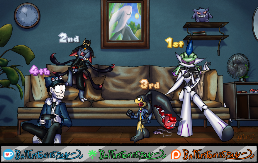 ORIGINAL TITLE: Girls' game night EXTRA GOODIES, FULL RESOLUTION, SPEEDPAINT AND ALTERNATE RENDERS ON SUPPORT PAGES From a simple doodle to a big elaborate picture. That's how it be with me! After a spa night with the boys, Tag gets invited to play some rounds of mario party with the girls! Unfortunately, mario party does its thing, and it seems that a fight is about to break out...how unfortunate. This was one of the big pics! It required a ton of 3D posing and several hours of work. Around 11 hours or so...But in the end, i'm happy with the results, I think it turned out good. Enjoy, ya weird salamanders! https://linktr.ee/battlestoriesfan #sfw #cartoony #stylized #oc #originalcharacters #weavile #mawile #ironvaliant #gardevoir #robot #female #anthro #anthropomorphic #pokemon #nintendo #pokemontrainer #human #art #artwork #digitalart #illustration #krita #blender #commission #digitalmedia