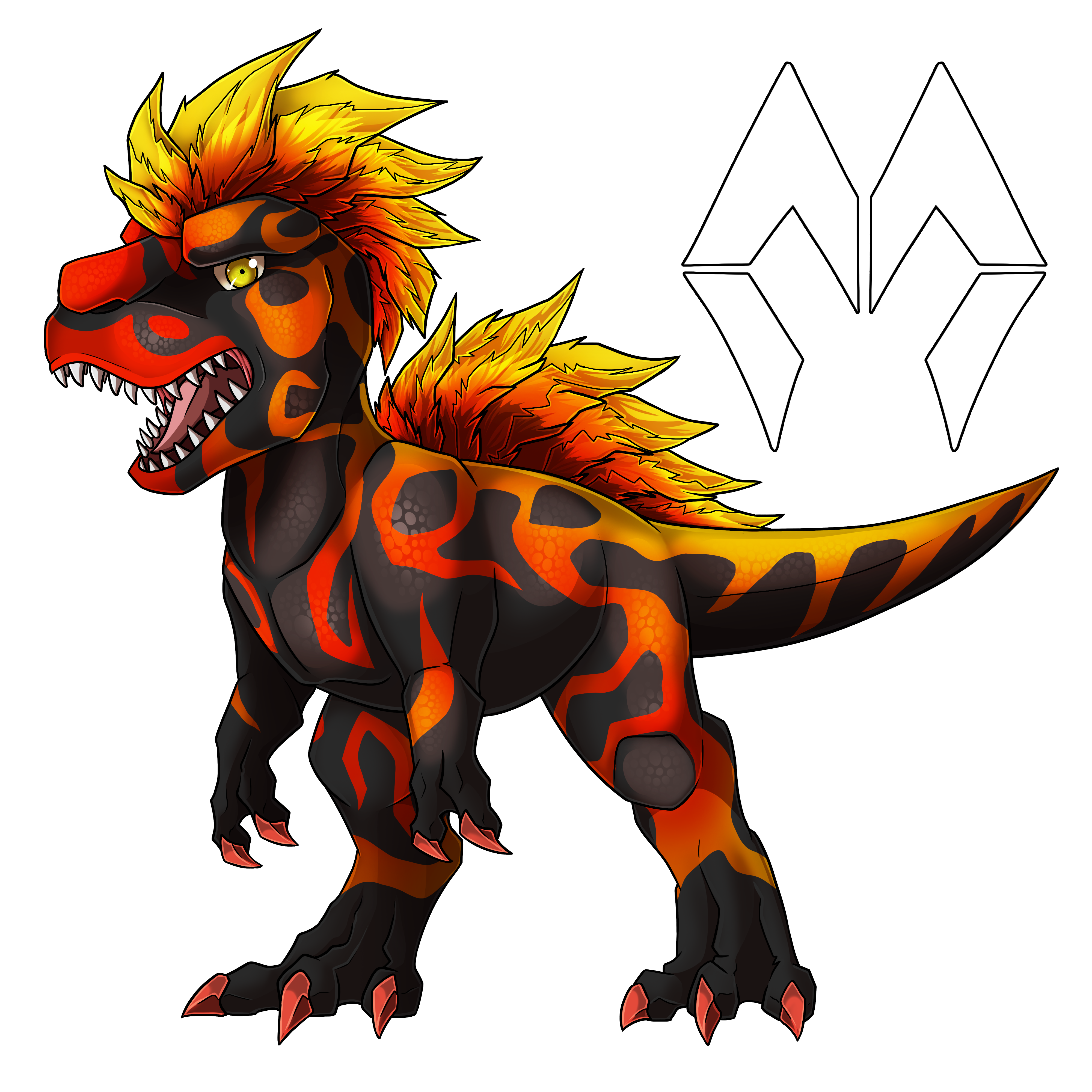 [Patreon](https://www.patreon.com/MayDrXe) I wanted to draw every Fossil Fighter Dinosaur and creature from the Games it take me a while but Im starting with Fire types! [Original Post](https://www.newgrounds.com/art/view/maydrxe/fossil-fighters-t-rex)