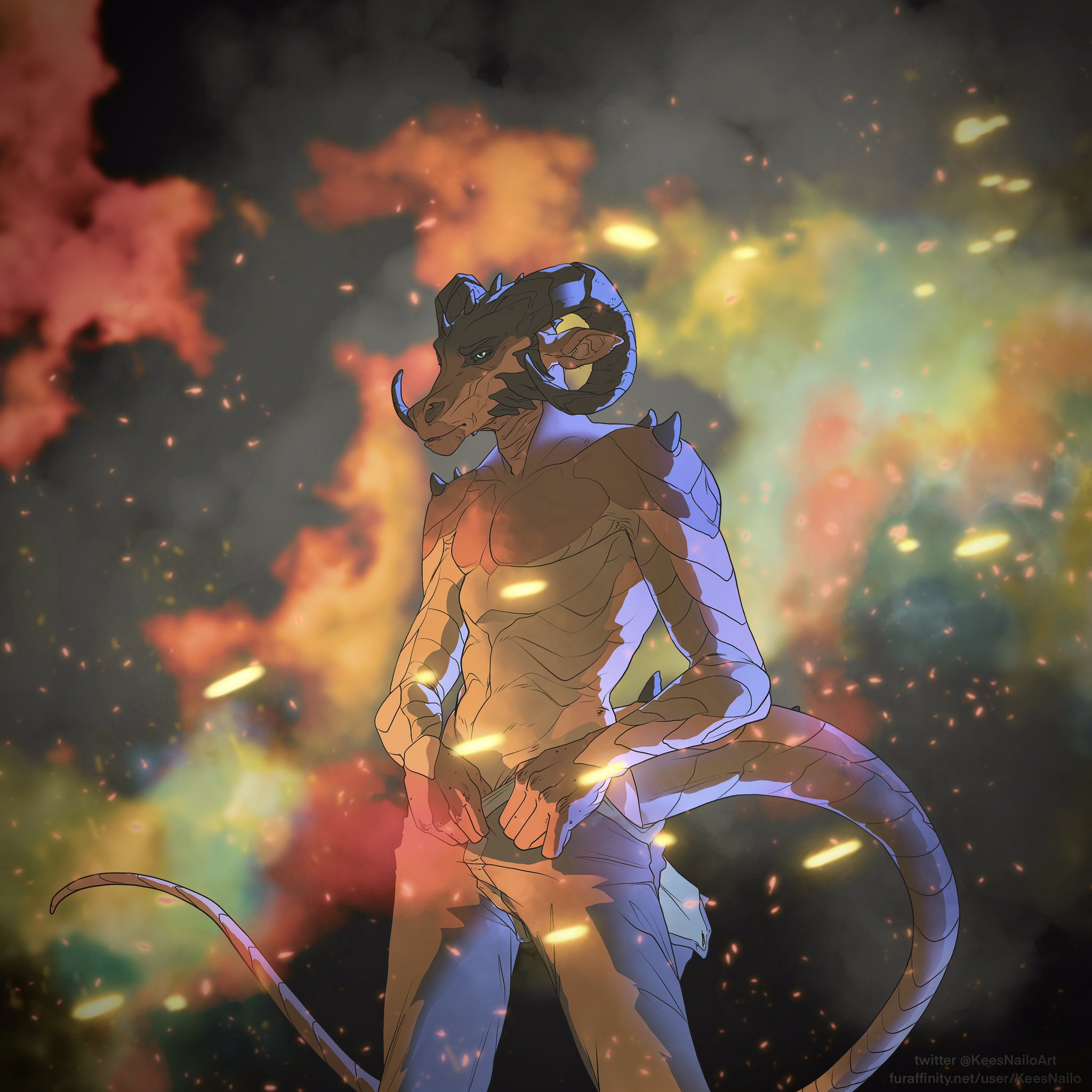 When I was a wee lass I was heavy into dinosaurs and soon discovered dragons. So I thought to make a dragon man, not knowing that D&D existed, not knowing that 'dragon people' was already a thing. This is an updated, redesign of Dartac from how I first imagined him but he's an old OC of mine from 20+ years ago and has become one of my most beloved comfort characters. He's not evil at all, just a drowsy dad, retired from the Wiley adventures we went on for so many years. You're such a good friend to me.