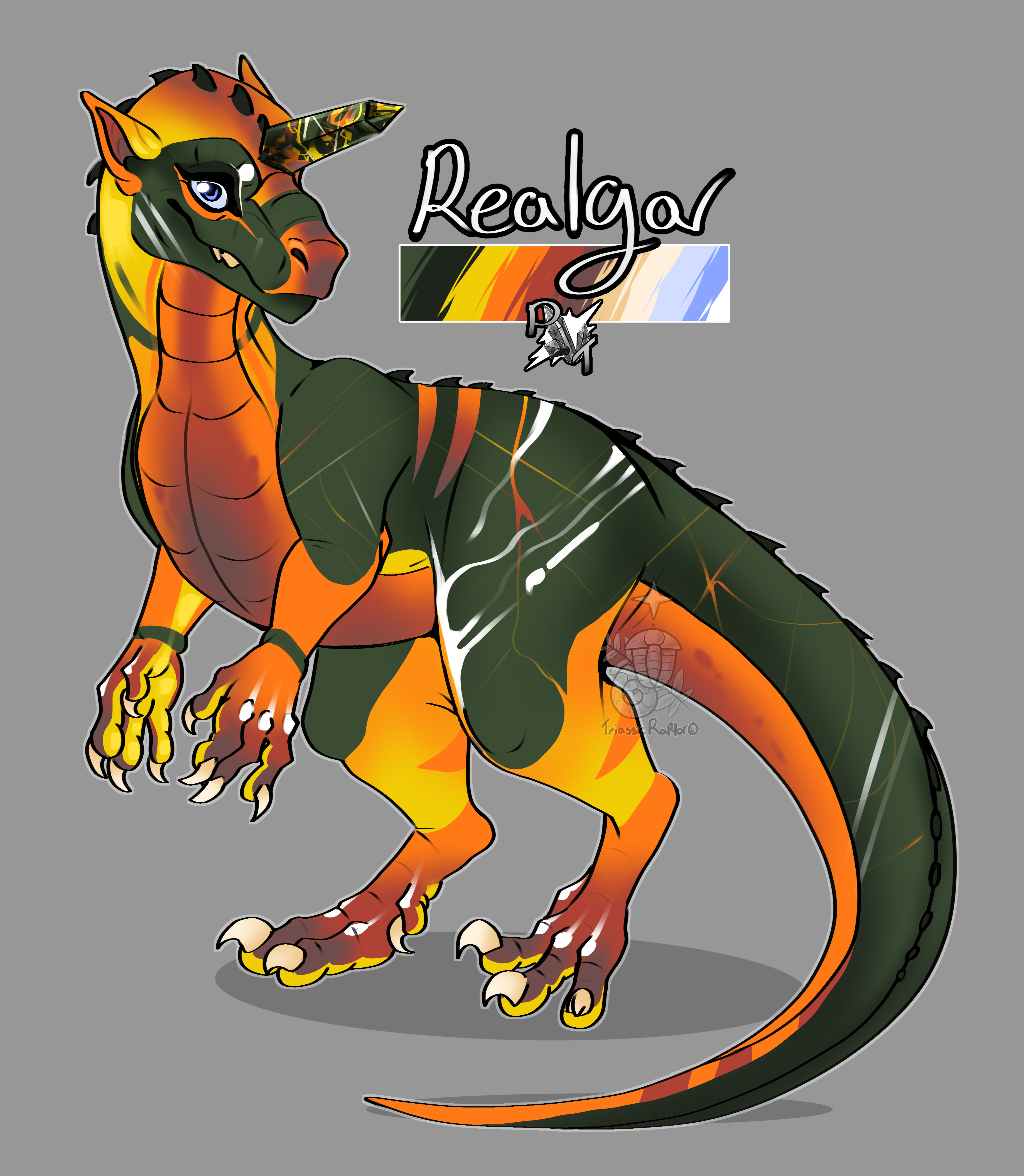 • A dinosaur like creature based off of th3 realgar stone. If you want more info on the species just ask! It's open species :)