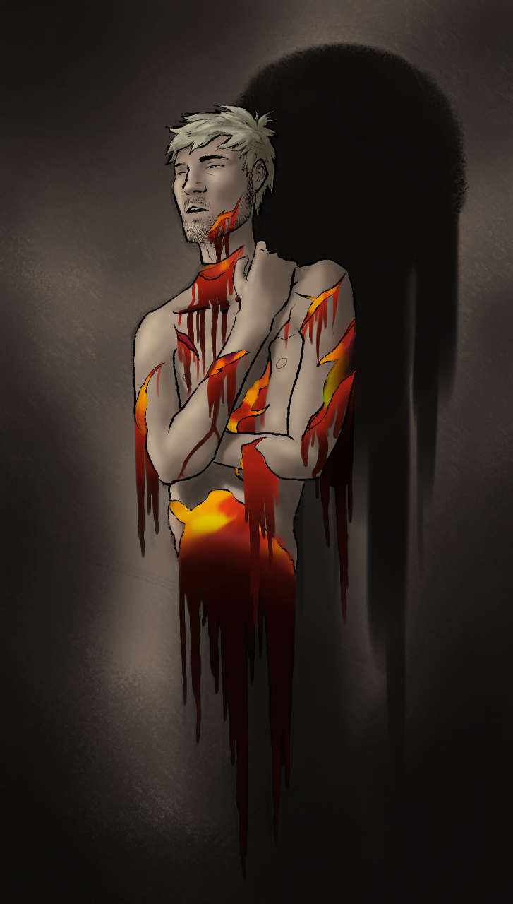 He ate the 9000 spicy chocolate (no legit I did a challenge with spiciest chocolate one time with a friend and he had the milk when it was over so I washed it down with pink Whitney Vodka 😂😂) (this has nothing to do with this piece I just like drawing emotional angy bloody dogs. Early 2000s deviant art style cringe is dead and the world is worse 💃) (I'm also waking and baking lmao)