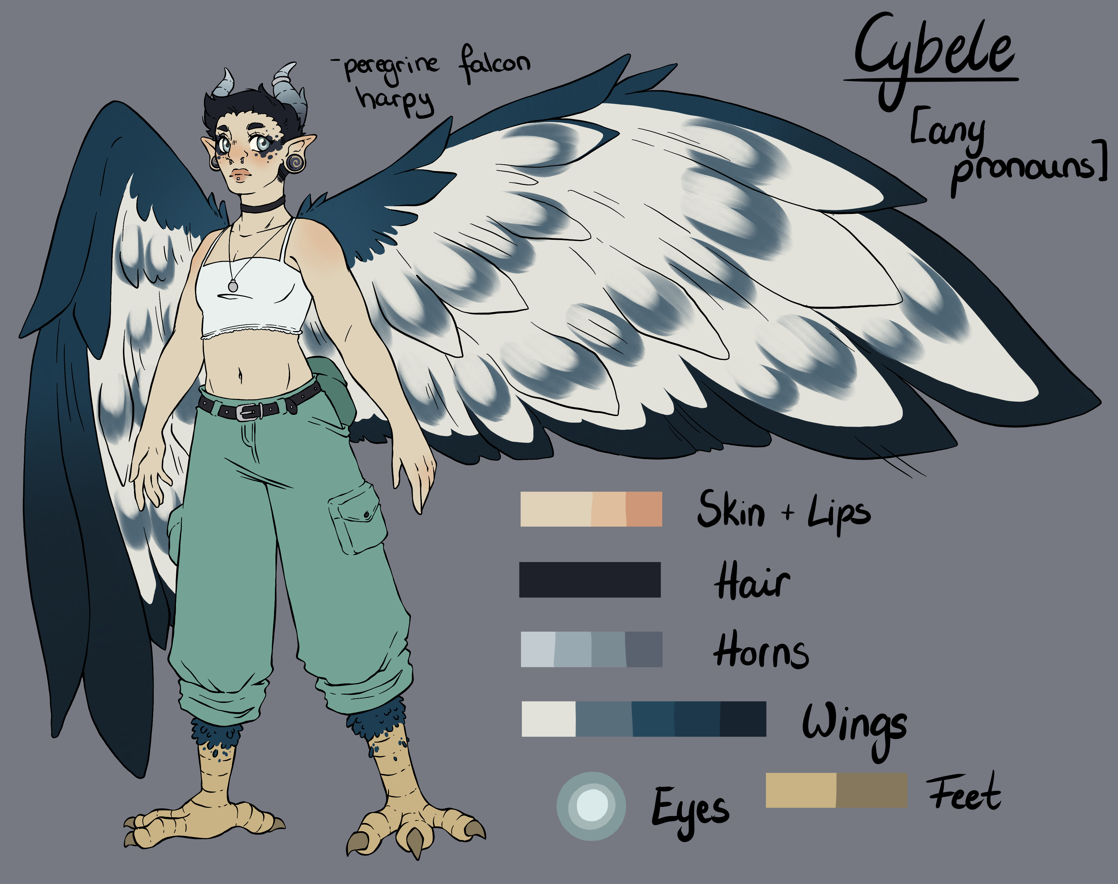 Another one of my beloved OCs. This time Cybele, the calm and curious harpy. She is based on a peregrine falcon and left her clan to explore the world, later joined by her friend and lover Eiris.