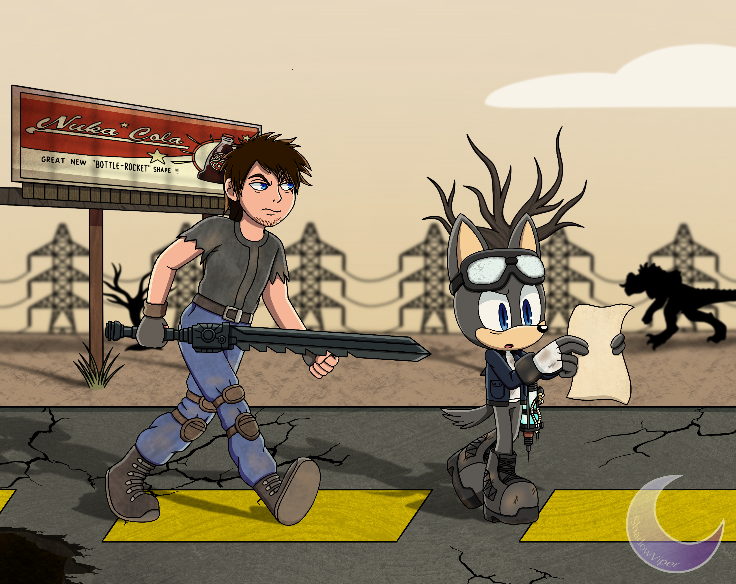 Cel-shaded commission for Hikari171 from DeviantART, featuring their OCs in Fallout style ^^