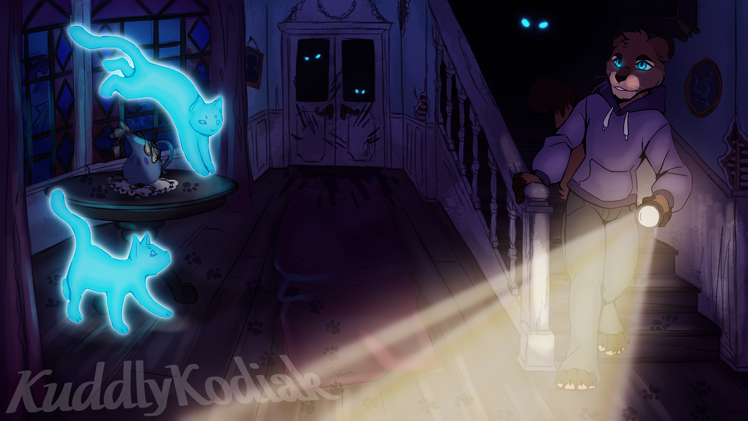 • Colored sketch commission for FalloutCoyote of their character Farryn exploring a haunted house.