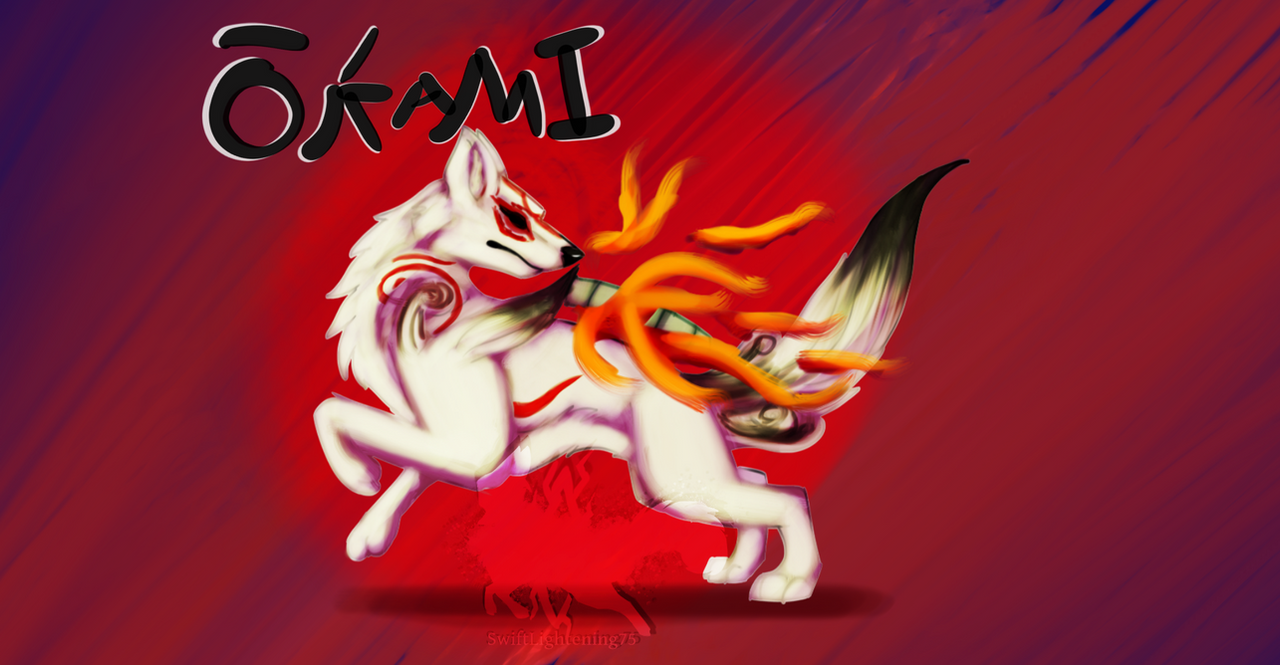Fan art belongs to © swiftlightening75 An inspirational piece inspired by the game Okami. I decided to try out this game and surprisingly I really enjoy it. The characters are sometimes goofy but also very interesting and the story telling with the use of painted pictures is a dine of art work. Okami has left me speechless, laughing my socks off, and sometimes on the edge of my seat. (If anyone knows the part with the ship you know what I mean ._.) I am still playing the game to get a complete finish since I am a completionist, but after completing it I will probably make a massive fan art piece. I have also heard there will be a second game on the way which is exciting news. What do you think of Okami?
