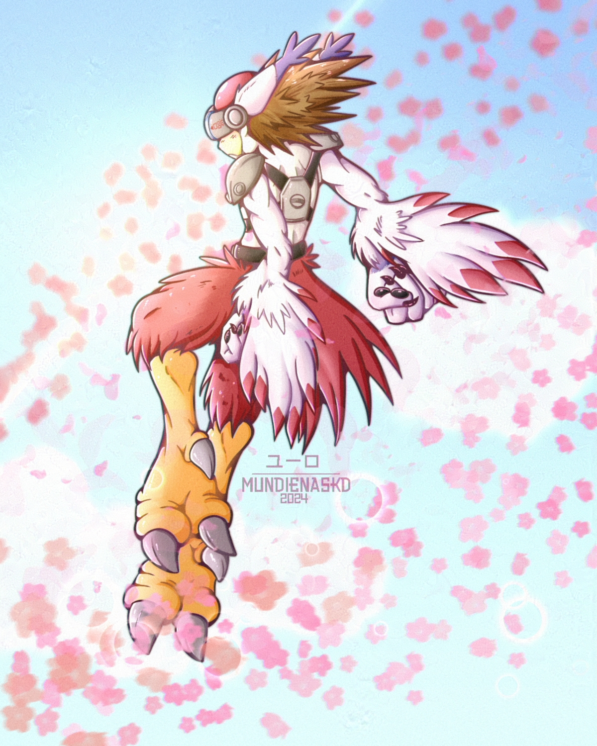 • Fan art of Silphymon in the sky sourrender with cherry blossoms.