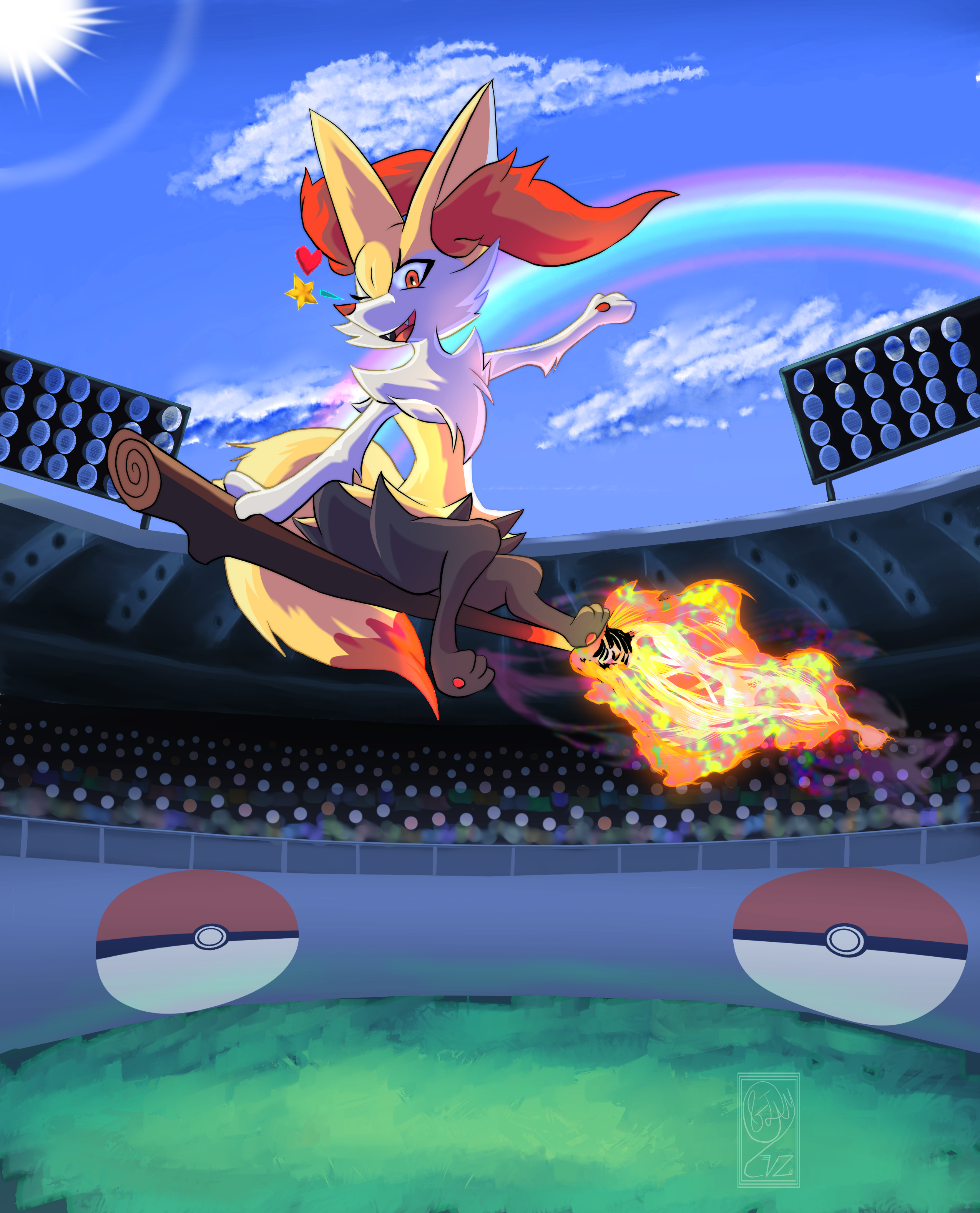 A fanart of Braixen done as a commission for someone. This is a second version where I made edits to better the appearance of the piece. The holographic magical flame was the biggest edition! Pretty gnarly to figure out too... Braixen is a copyright of The Pokemon Company/Game Freak/Creatures.Inc/Nintendo.