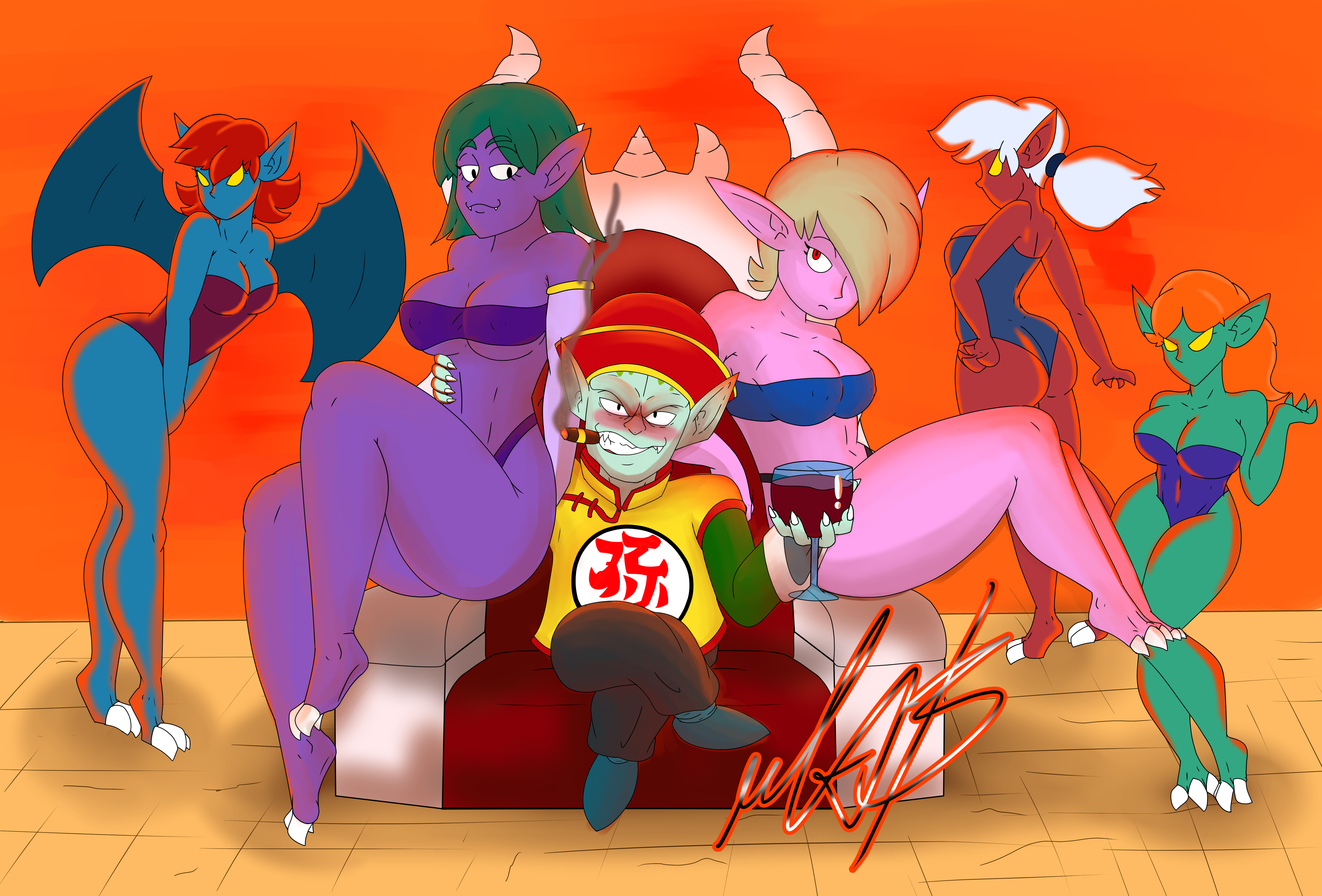• Just Garlic Jr. wearing Gohan's outfit surrounded by a harem of sexy demon skanks.