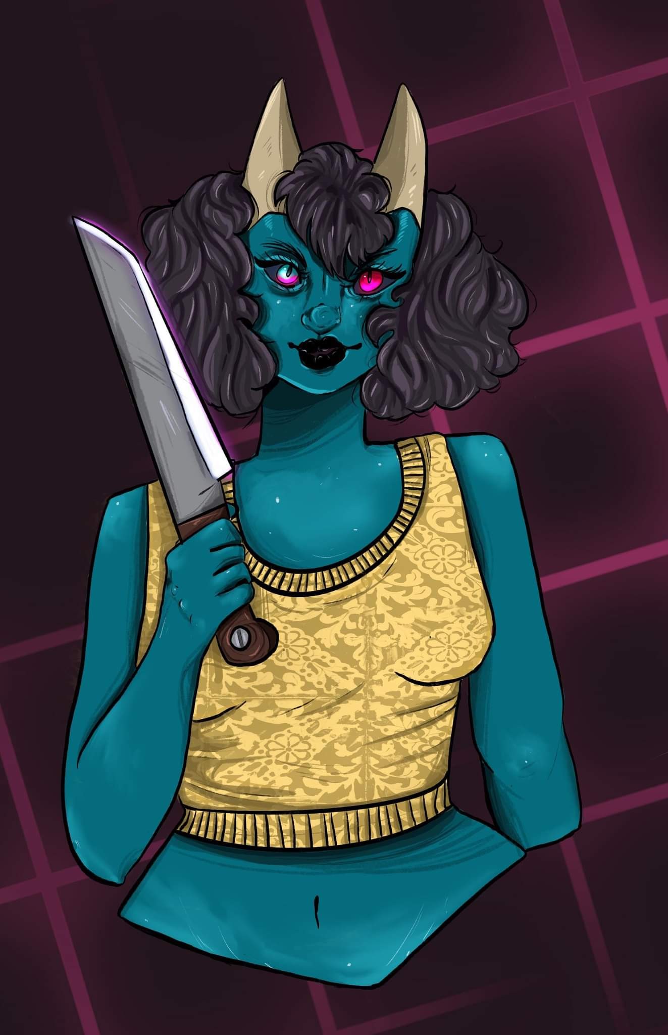 This is Mia she is another one of my ocs, she is the physical embodiment of Gemini. She begins to loose her mind under stress and other things :3. It can be told by her eyes the pink representing her madness.
