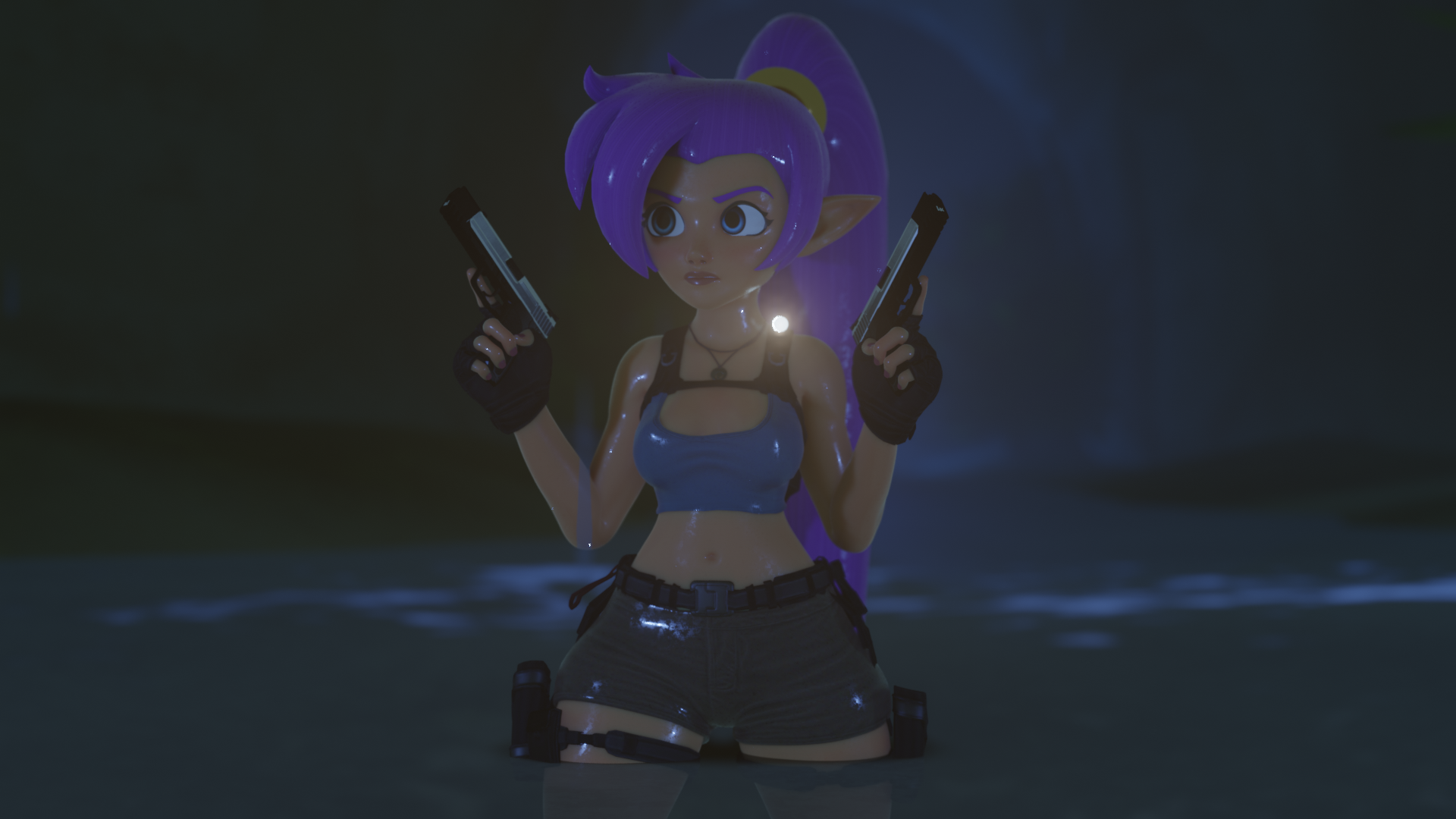 A brave Half-Genie explores the treacherous jungle in search of treasure! [View the full animated loop here](https://www.newgrounds.com/portal/view/891049) Had a fun idea of Shantae dressed as Lara Croft, and it turned into this. Might do more with it. Shantae model by [@Lia_3D](https://twitter.com/Lia_3D), Lara Croft clothes by [@Moeyak5](https://twitter.com/Moeyak5)