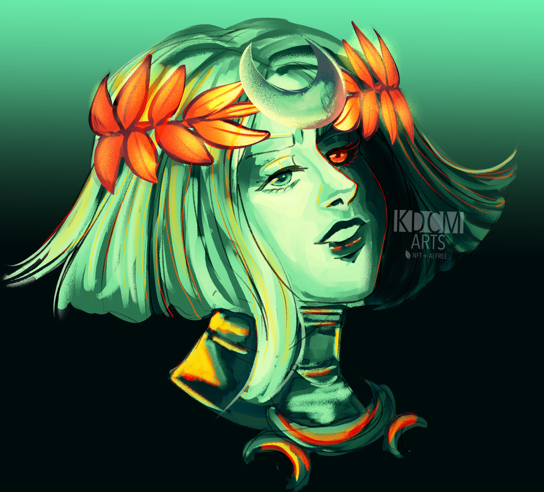 • Artwork for Gerd, Freyr's wife, and Fjoelnir's mother. She's a frost giantess. Watercolour, ink and gold watercolour on watercolour paper.