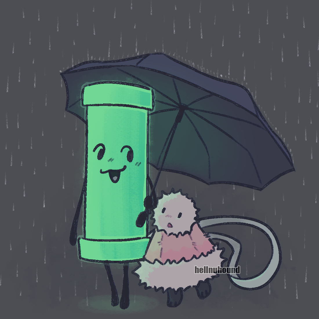 felt like drawing glowtick and pompom sharing a umbrella in a rainy night (and test some new brushes) glowstick belongs to [SeagullCity](https://inkblot.art/profile/SeagullCity)