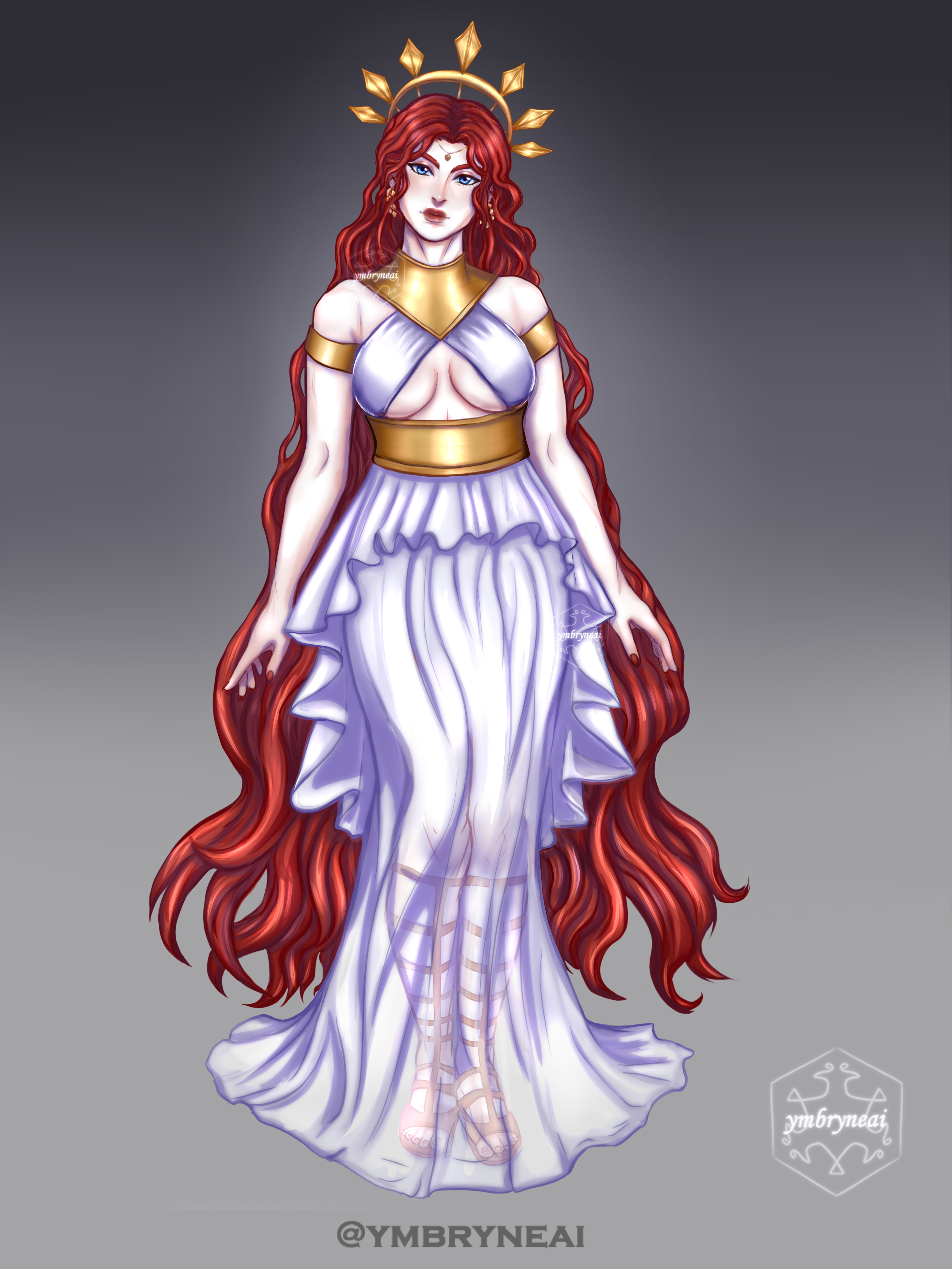 The patron "deity" of my homebrew dnd world. She's like a combination of Talos from Skyrim and Hylia from Legend of Zelda... She was a mortal, but she was so highly revered, she became a "god" in her peoples' eyes. She (and the other people in her realm) are reincarnated over and over, so she's not a true god, just highly revered.