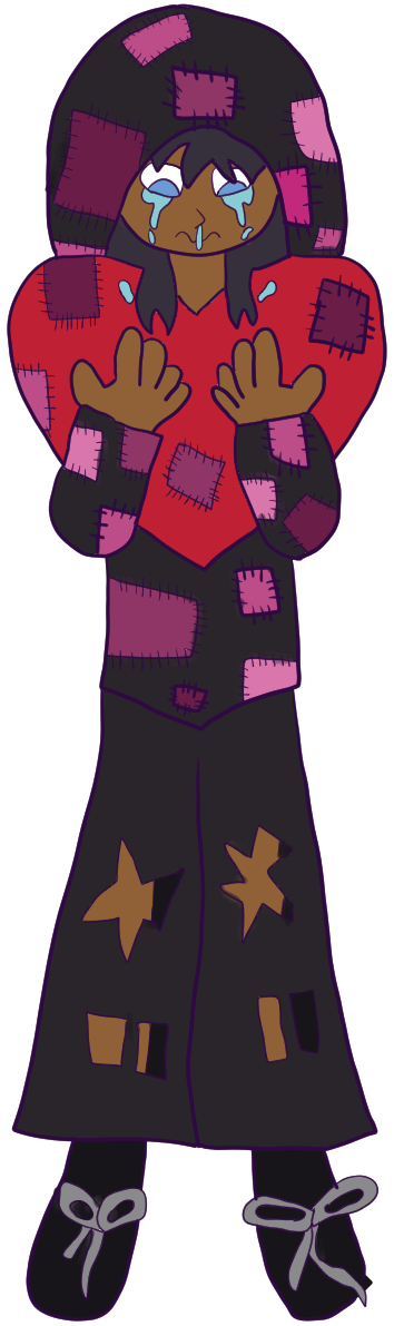 There was a tumblr post that said "draw a picture inspired by a set of lyrics from a song you're currently listening to", and I was listening to Tokyo Teddy Bear, a song about a kid running away and wanting to change himself, and I got to thinking. so I came up with this; don't worry, this character is an actor. "i'll make a ridiculously-sized pattern for it. Anything will do, as long as it serves as a replacement." if you're sad about seeing a character that looks homeless, look online on how to help the homeless crisis where you live and see what you can do to help.